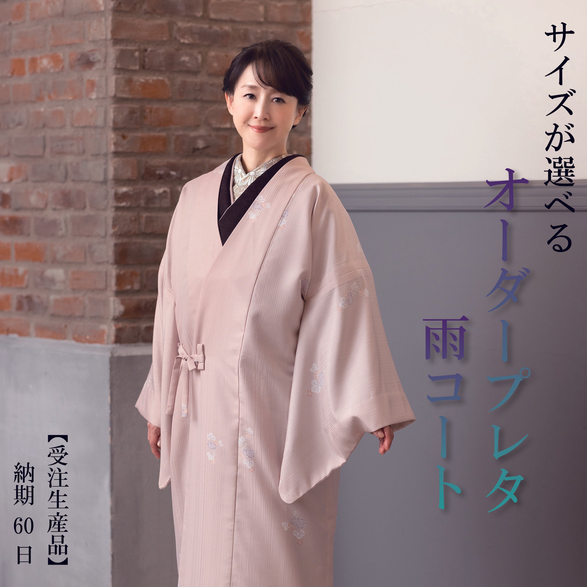 【受注生産品】オーダープレタ雨コート お仕立て上がり 飛び柄 瓢箪 薄ピンク ※納期約60日