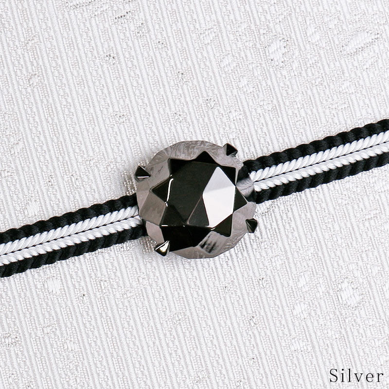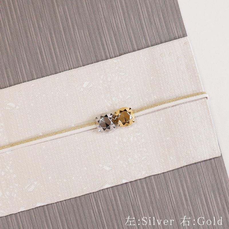 キラリと輝くダイヤモンドカットをモチーフにした「nono-obidome-diamond 帯留め」は、シンプルながらボリューム感たっぷりのデザインが魅力です。4か所の爪がさりげないアクセントになっていて、あなたの着物スタイルに遊び心をプラス。ひとつだけで上品に決めるのはもちろん、色違いで2連にするとさらに個性的で目を引くコーディネートに。小さな巾着入りで扱いやすく、持ち運びや保管にも便利です。おしゃれの幅が広がる帯留めです!