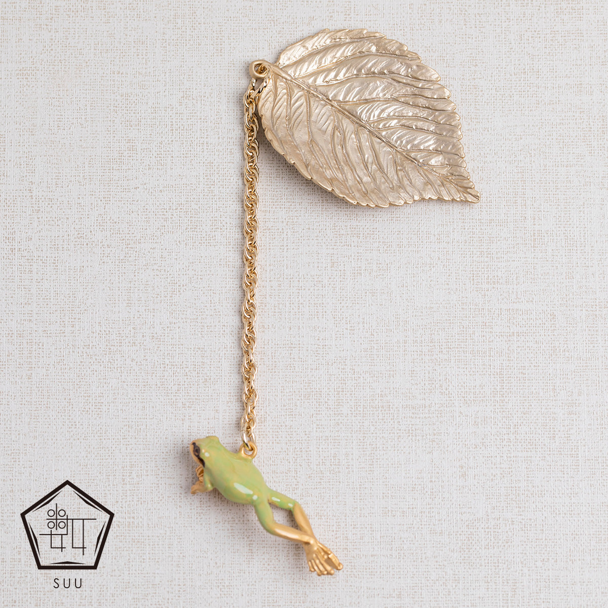 着用時にカエルの造形や背中の緑色がより映えるよう緻密な角度調整がされています。