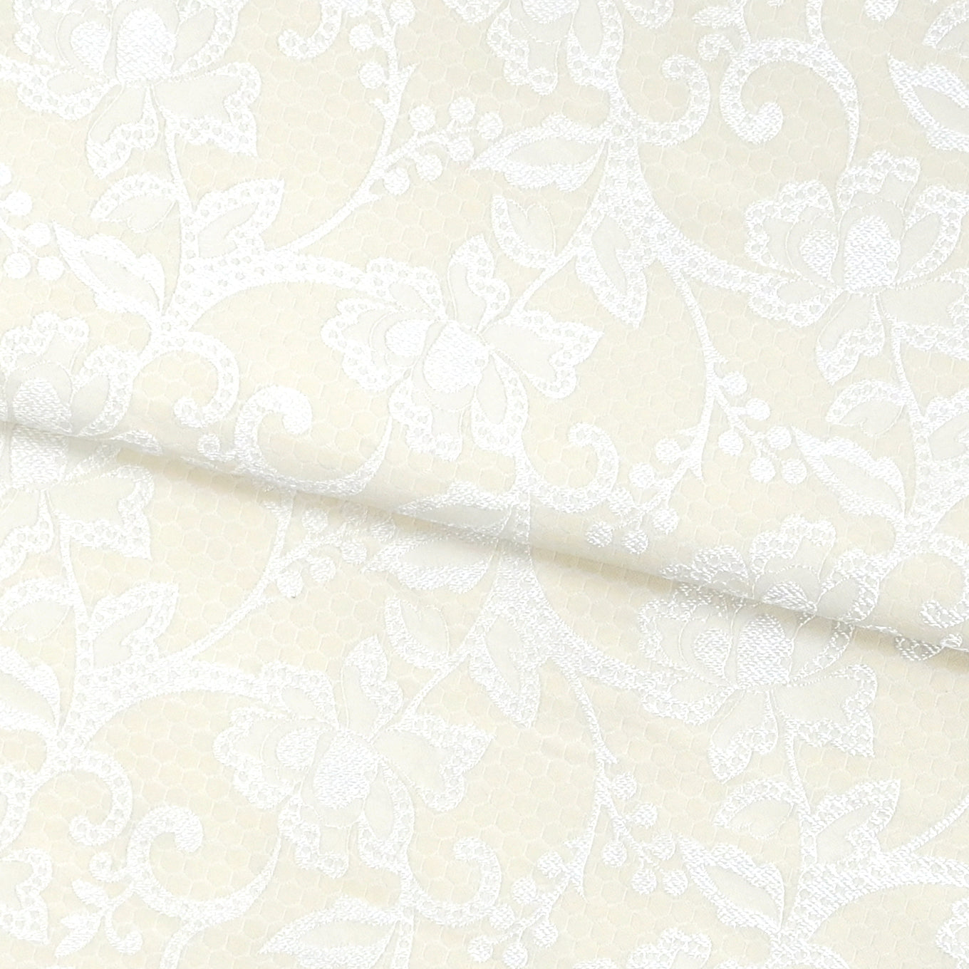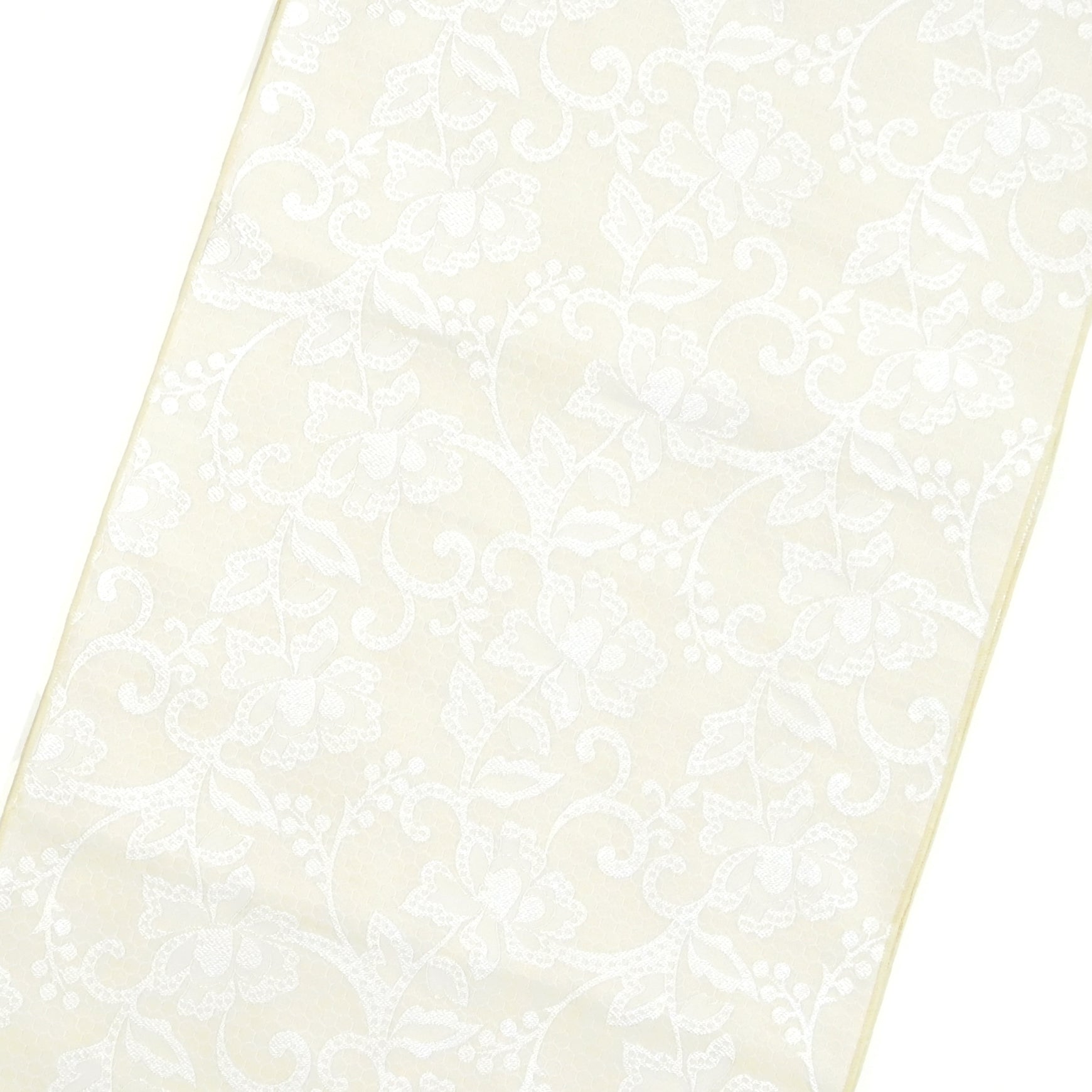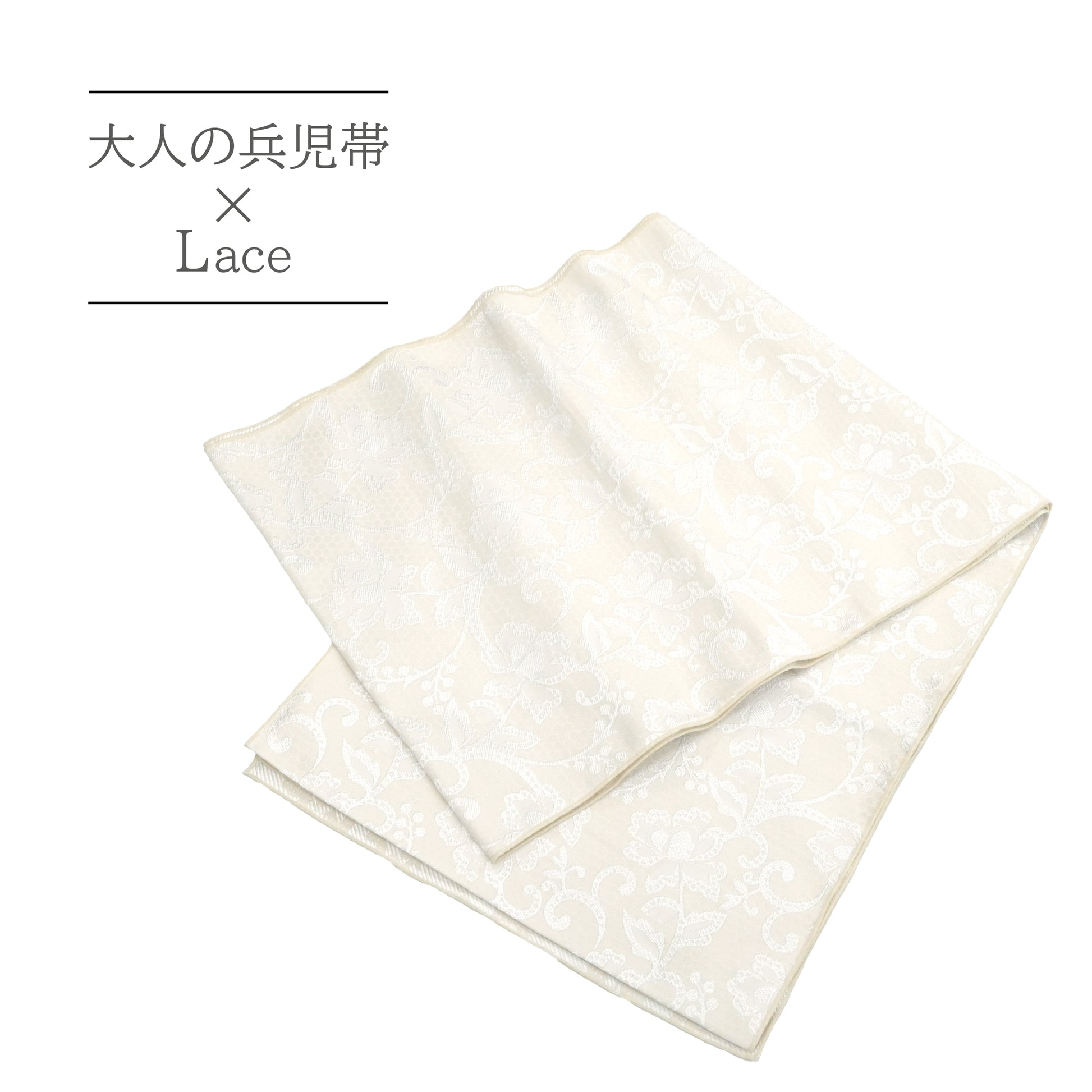 レース風の花柄デザインの兵児帯です。単色オフホワイトで上品な着姿を演出します。