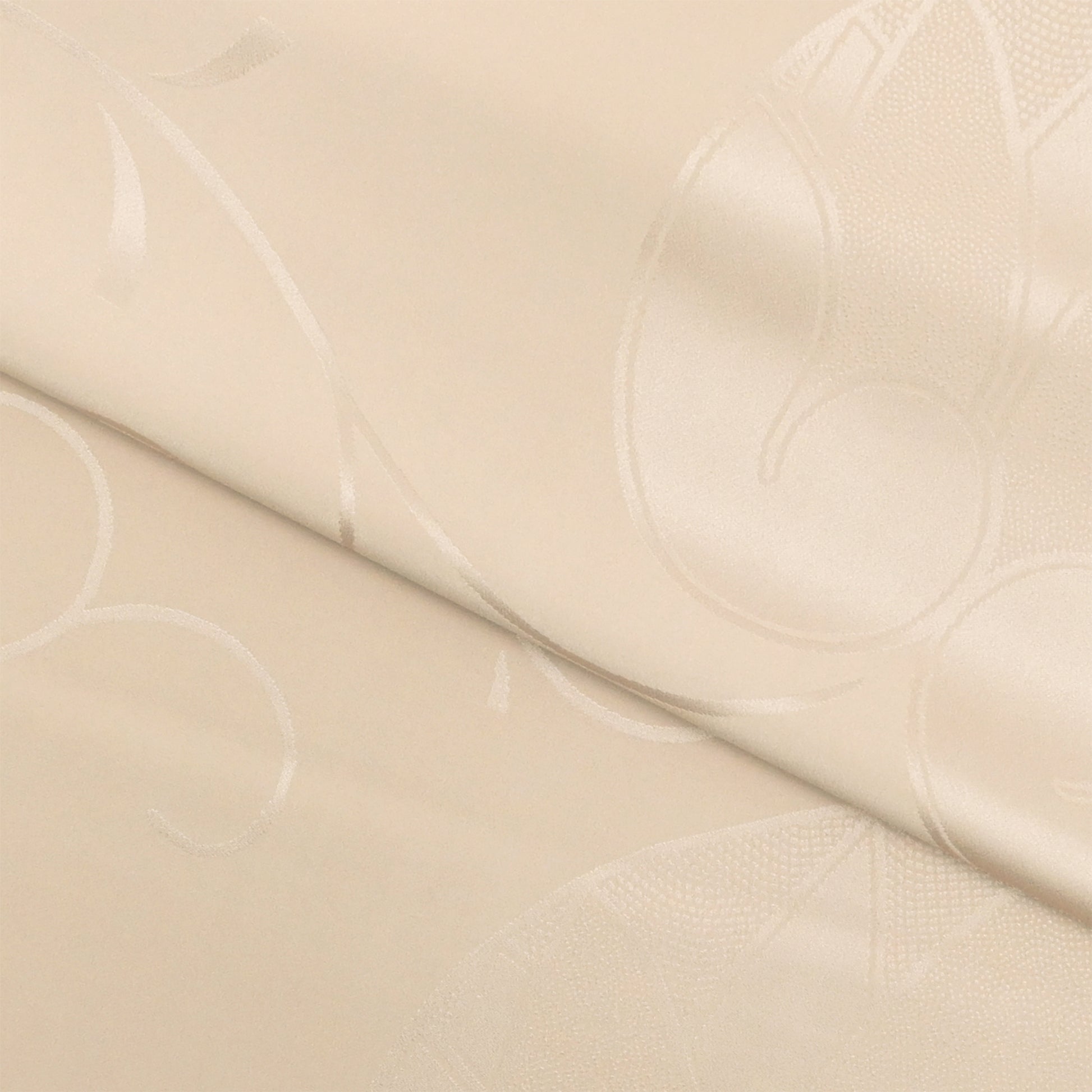 東レシルック素材の綸子地がもたらす柔らかさとなめらかな肌触り。生地に隠れた「葵」の地紋は、さりげなく上品な遊び心を忍ばせています。無地染めだから、帯や着物の主役を邪魔せず、むしろその美しさを引き立てるサポート役に徹します。セミフォーマルな装いで颯爽と、カジュアルなお出かけでリラックスと、シーンに合わせて活躍する万能選手。なんと言っても自宅でじゃぶじゃぶ洗えるのが東レシルックの最大の魅力。是非お誂えくださいませ。