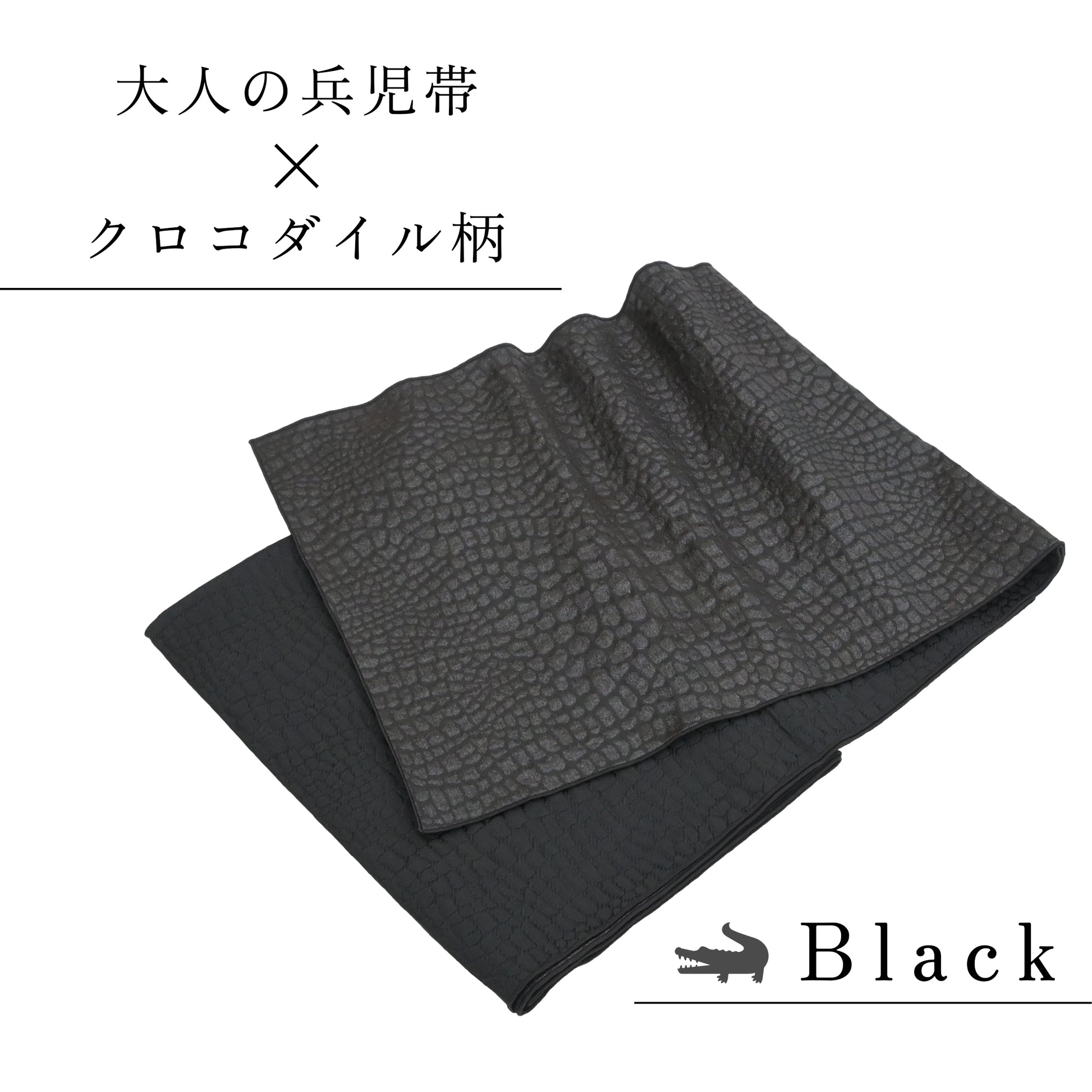 大人兵児帯 女性用 クロコダイル柄 ブラック