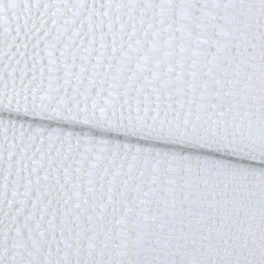 艶やかに浮かび上がるクロコ柄。カラーはシルバー(ややラベンダーがかったシルバー)です。裏地をあえて見せる結び方もオシャレ。浴衣はもちろん小紋や紬、デニム着物等のふだん着物とも相性が良く、様々なシーンで活躍してくれる帯です。