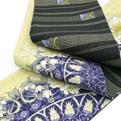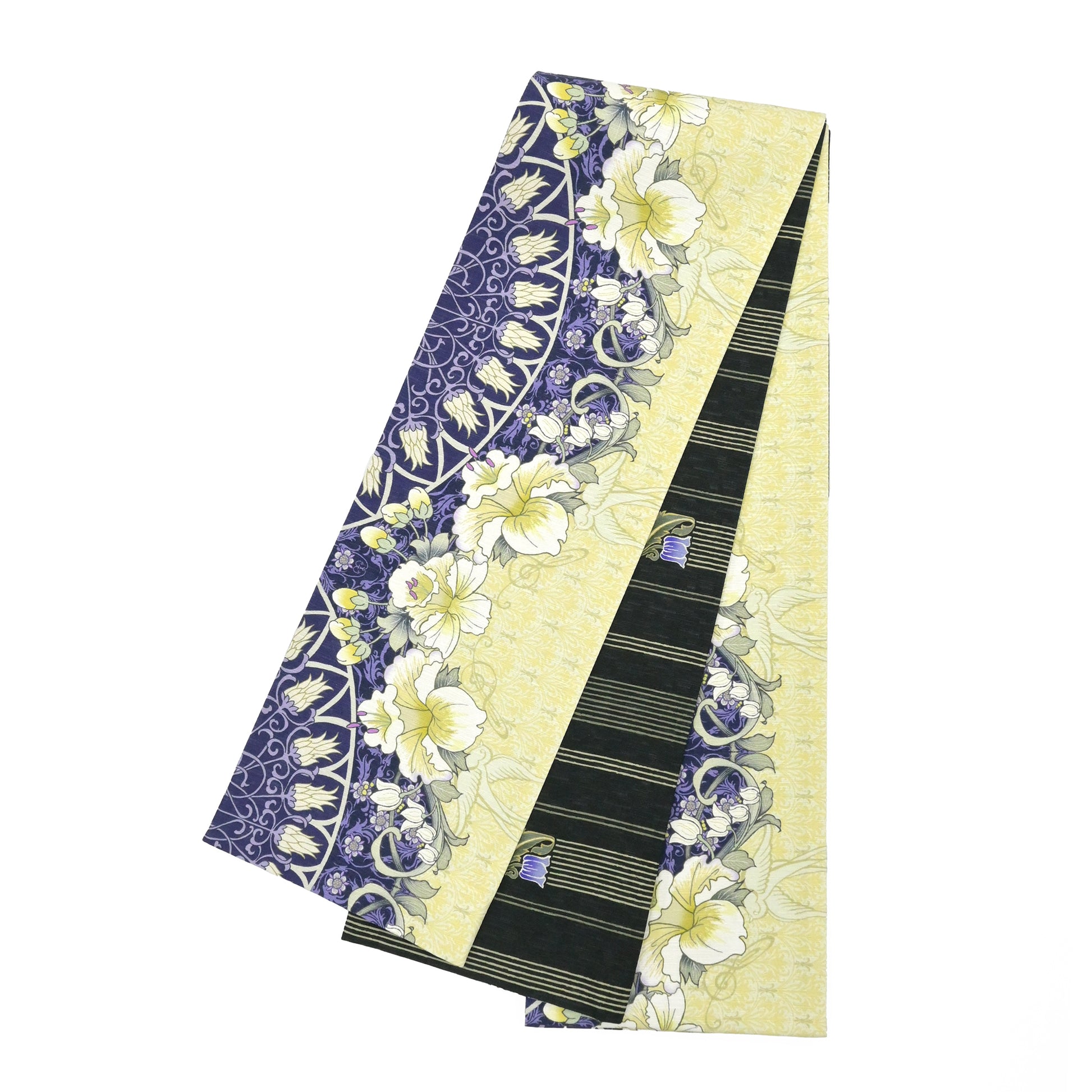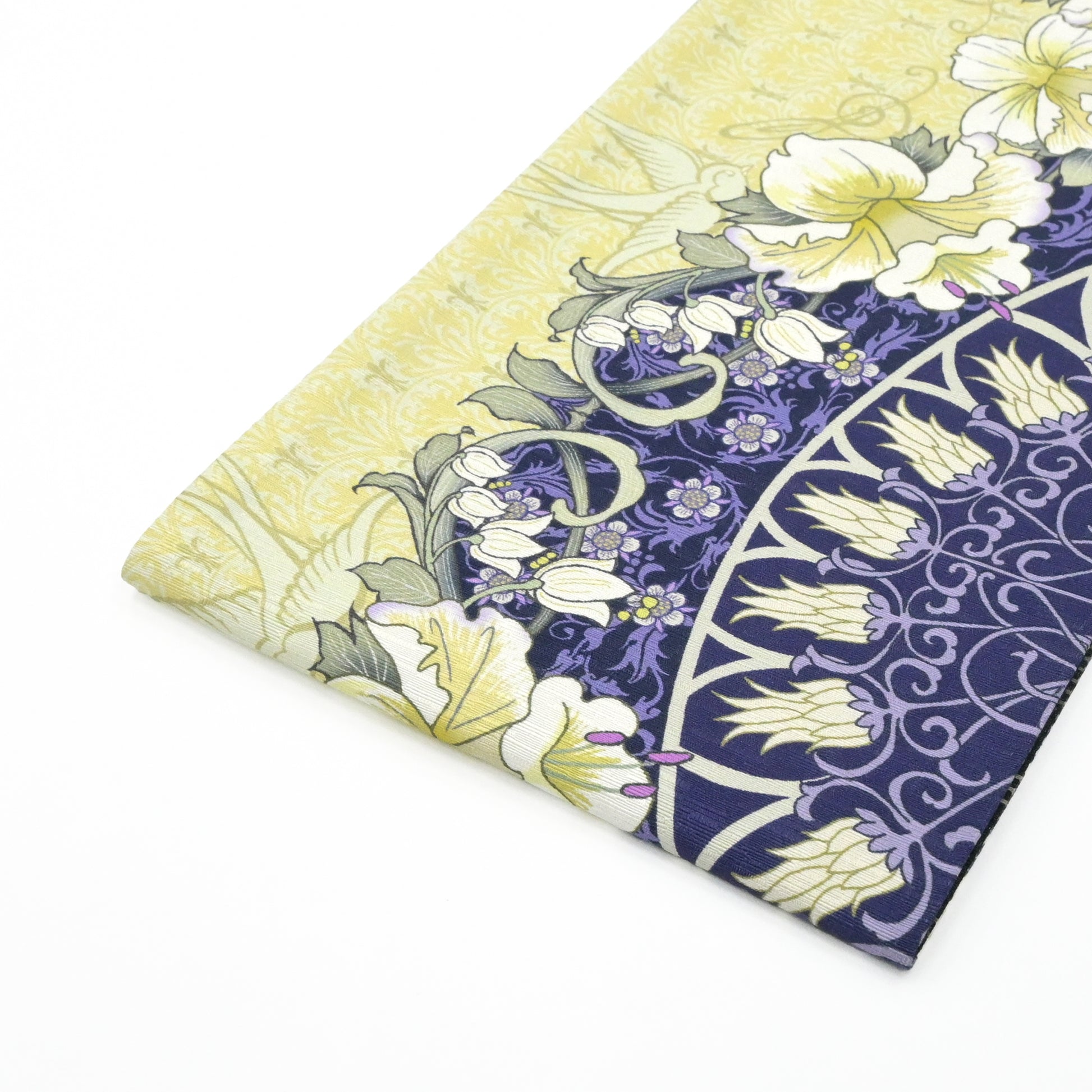 アルフォンス・ミュシャを思わせる優雅なアール・ヌーヴォーデザイン。いつもより、ちょっと華やかさがほしいような場面にぴったりな半巾帯です。
