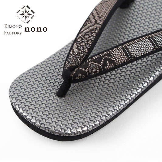 【Kimono-Factory-nono】菱屋カレンブロッソ 本場縞大島カフェ草履 唐草/グレー H-29 #女性用