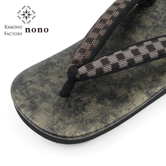 【Kimono-Factory-nono】菱屋カレンブロッソ 本場縞大島カフェ草履 スターダスト/ブラック H-28 #女性用