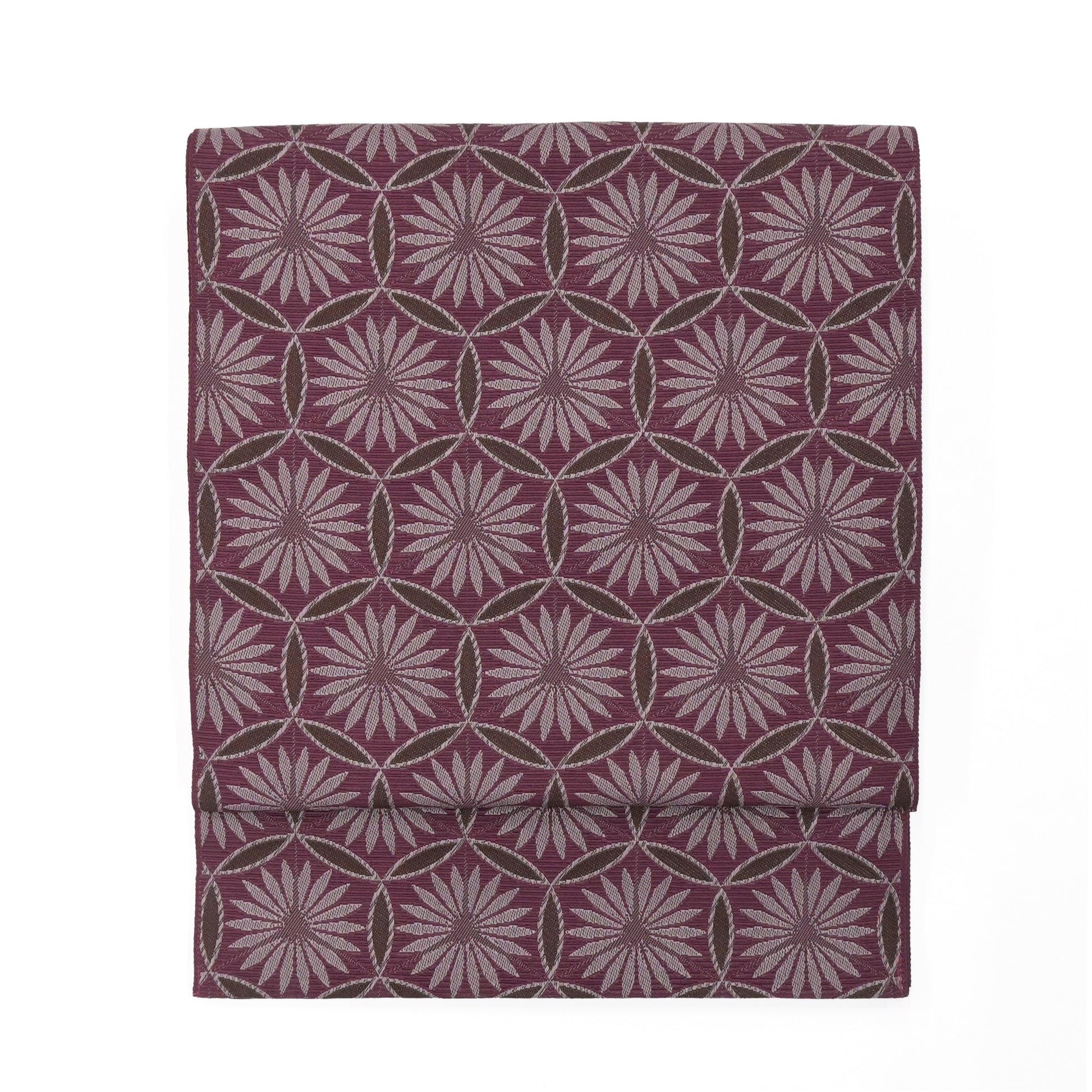 おしゃれ八寸なごや帯 仕立て上がり 七宝花紋 赤紫