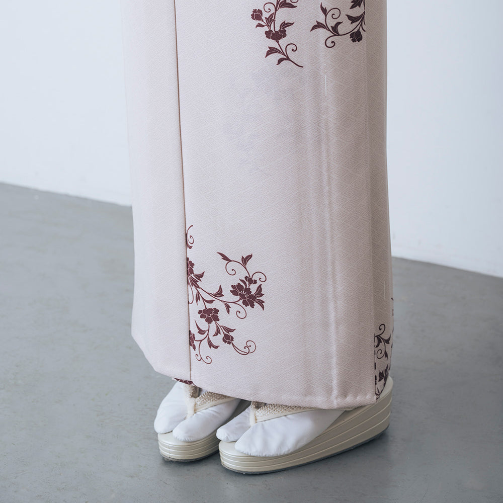 東レシルック 小紋 ~kifkif~「牡丹唐草」 灰梅 【袷・単衣用】
