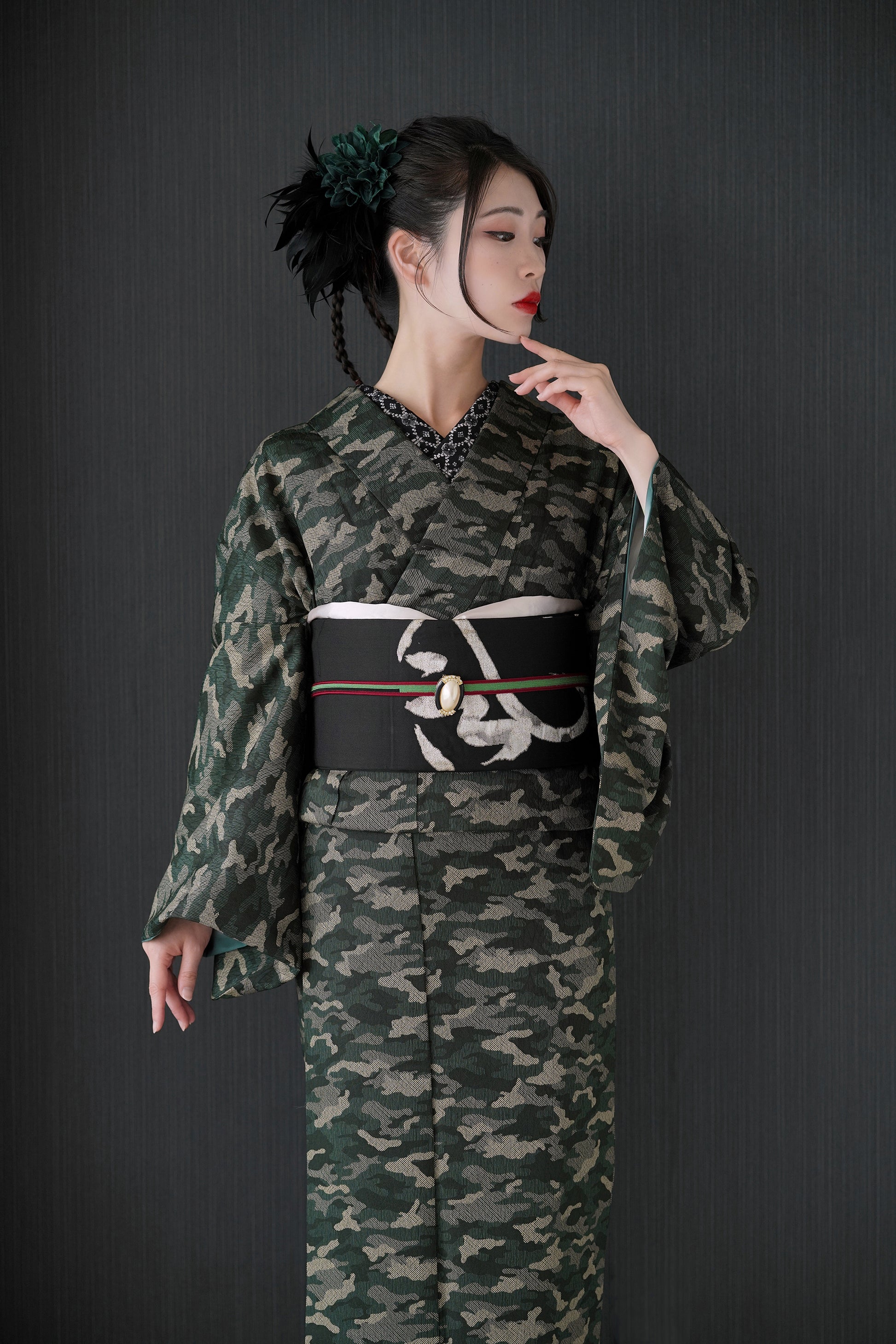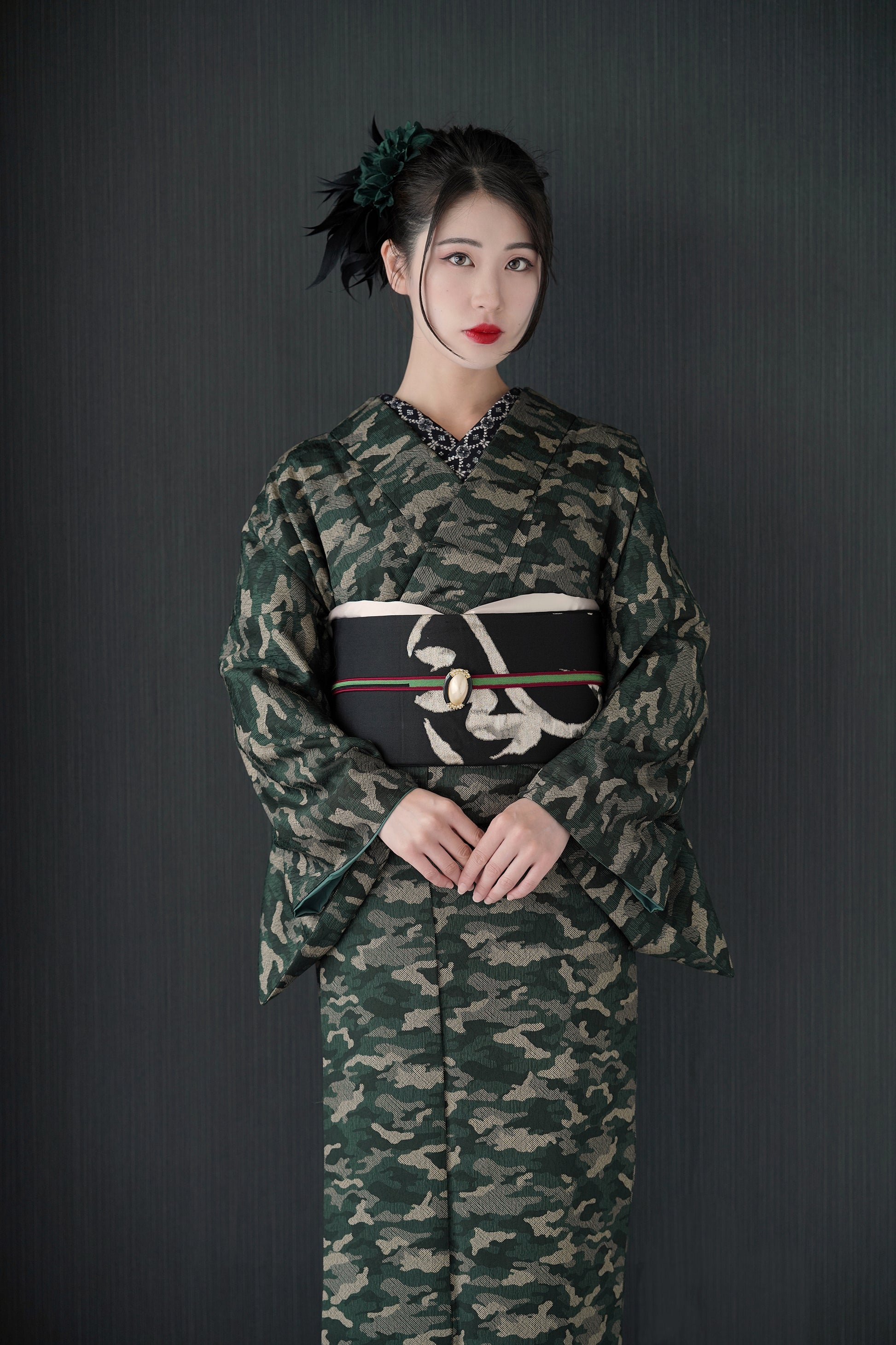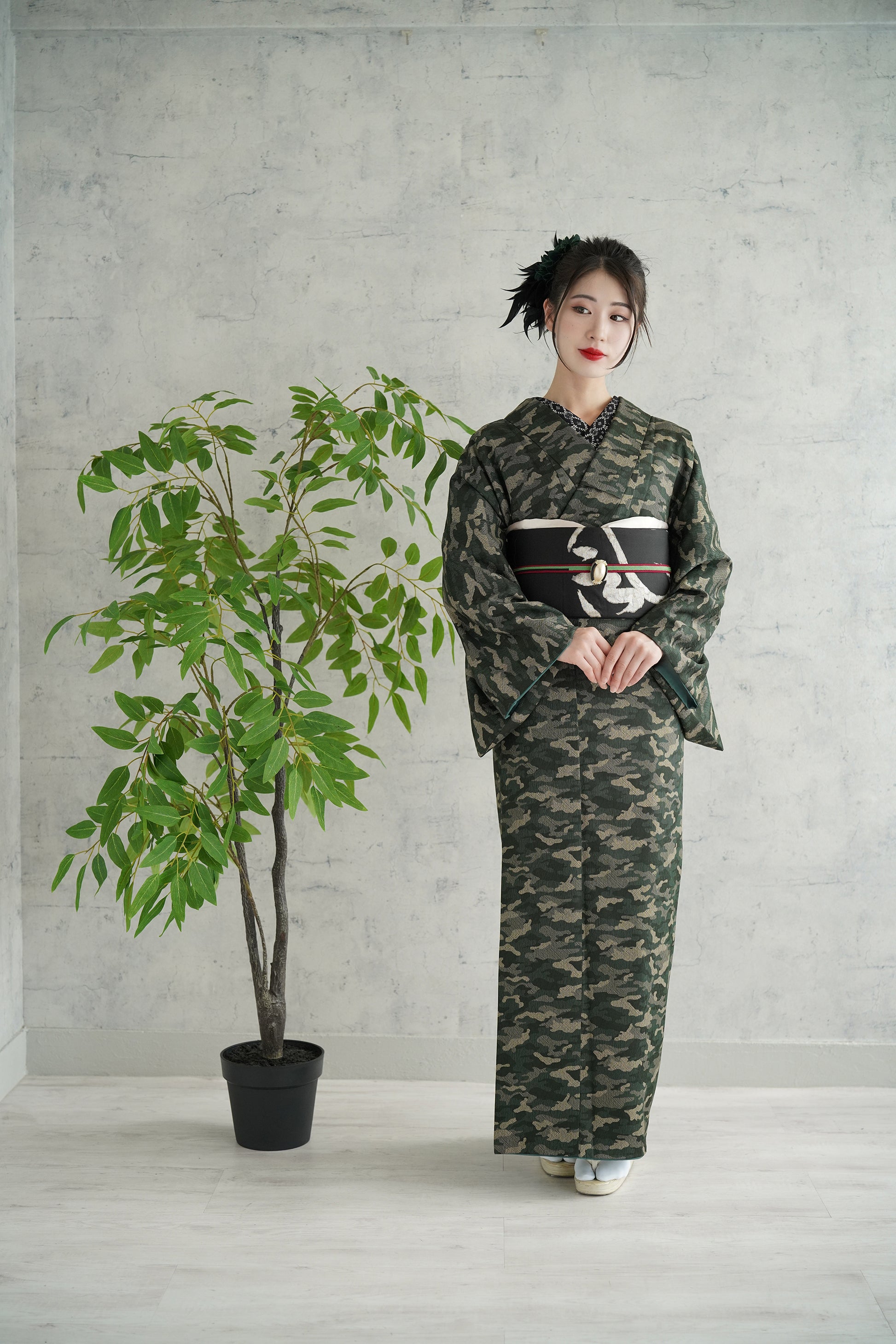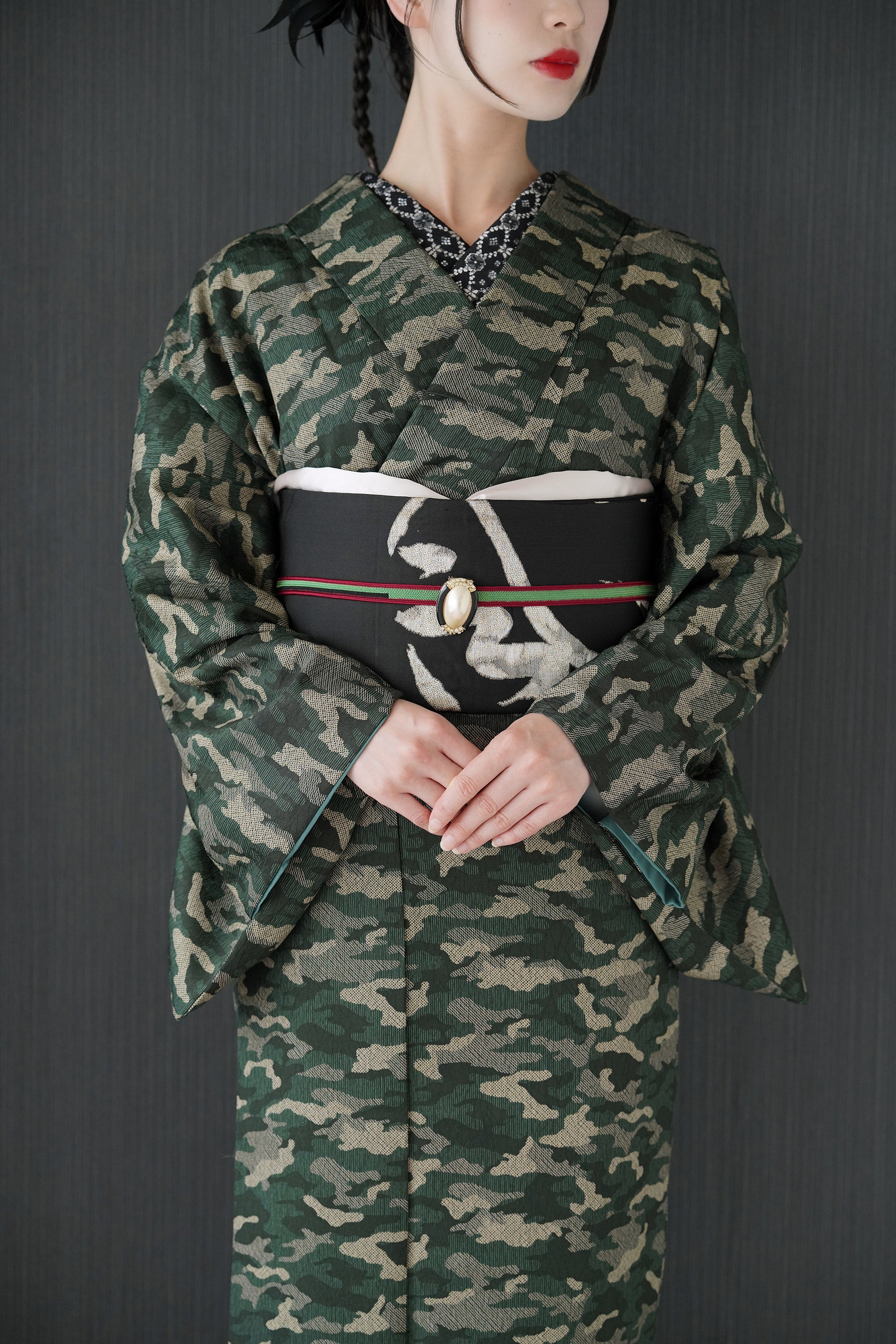 東レシルック 小紋 ~fuku~「カモフラージュ」グリーン 【袷・単衣用】