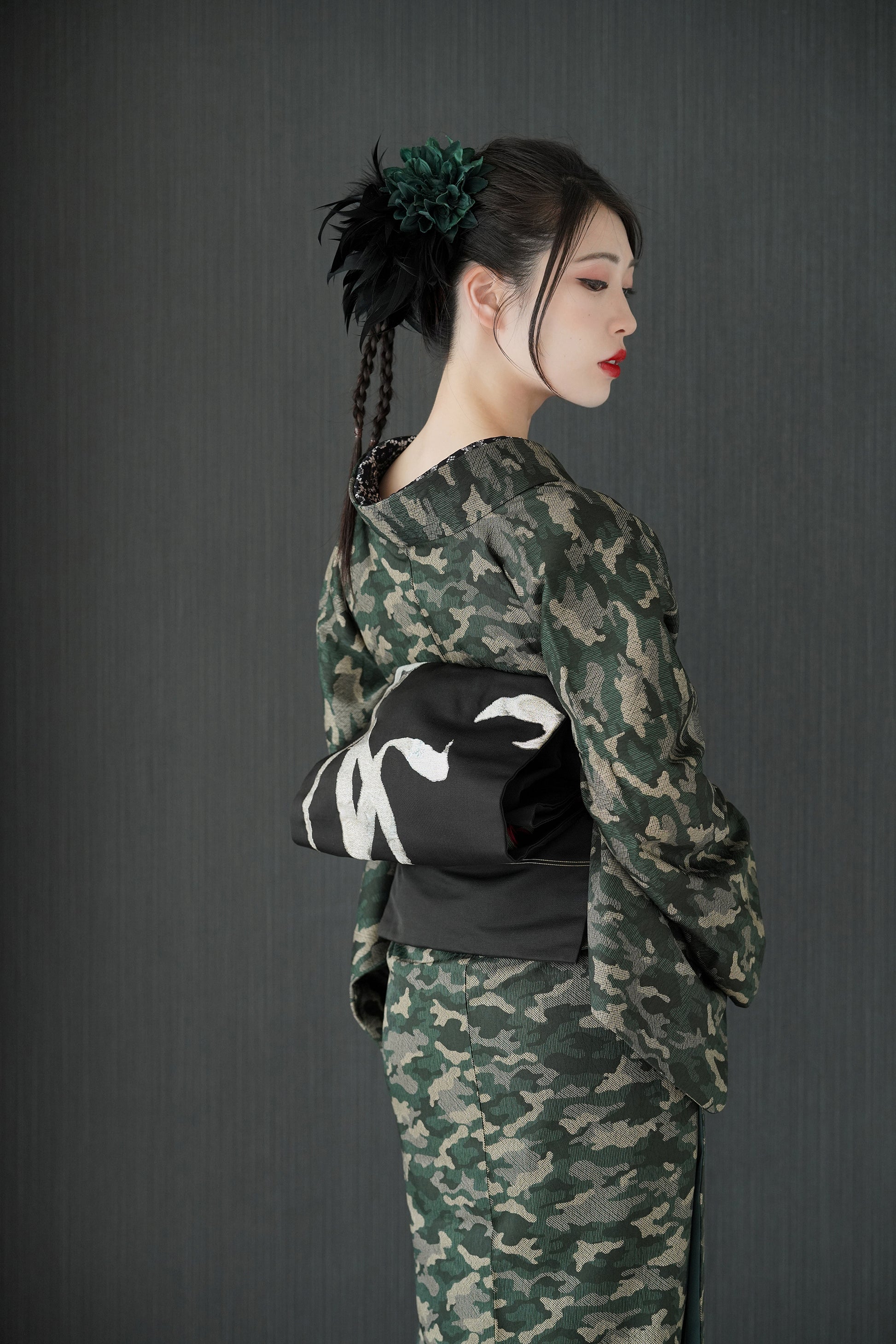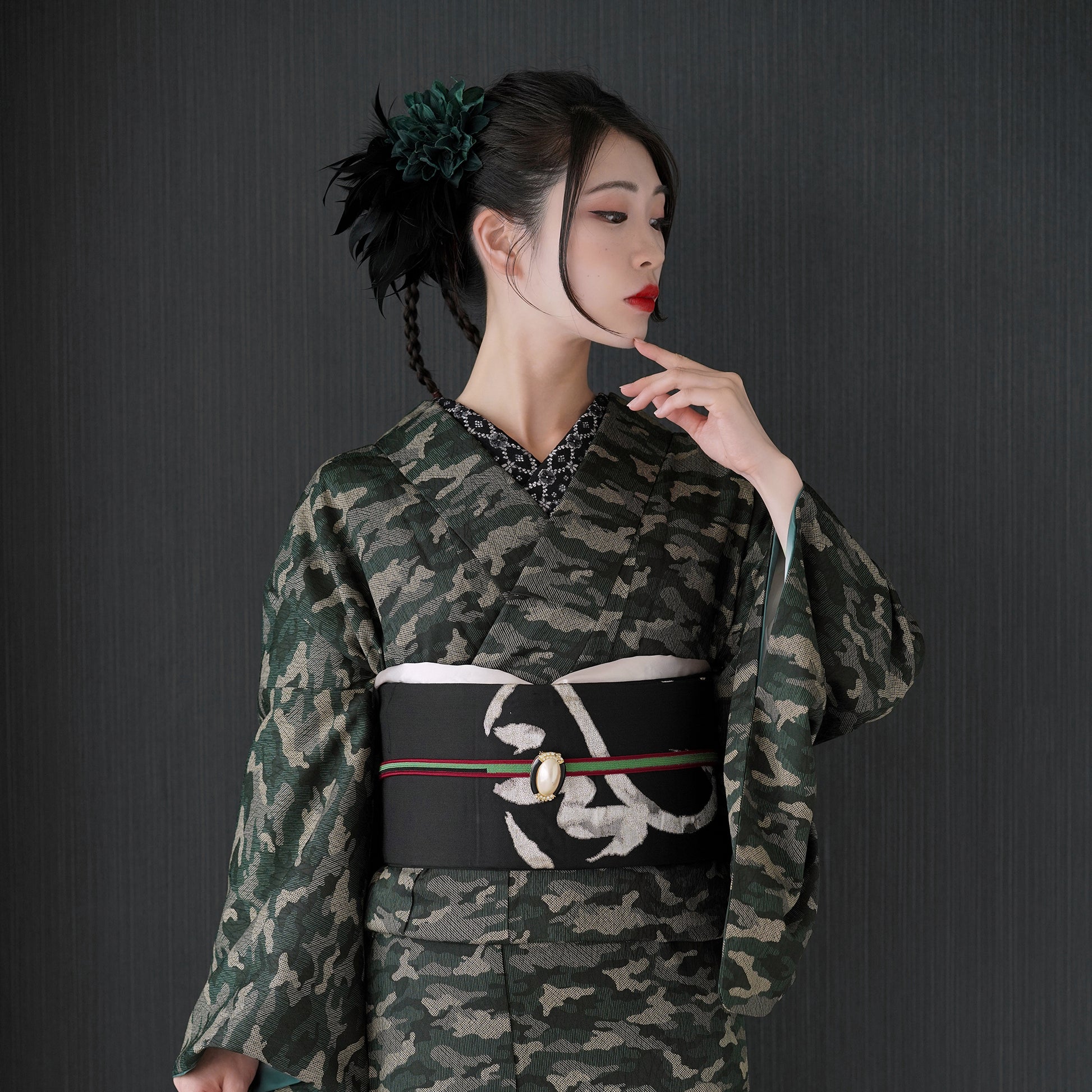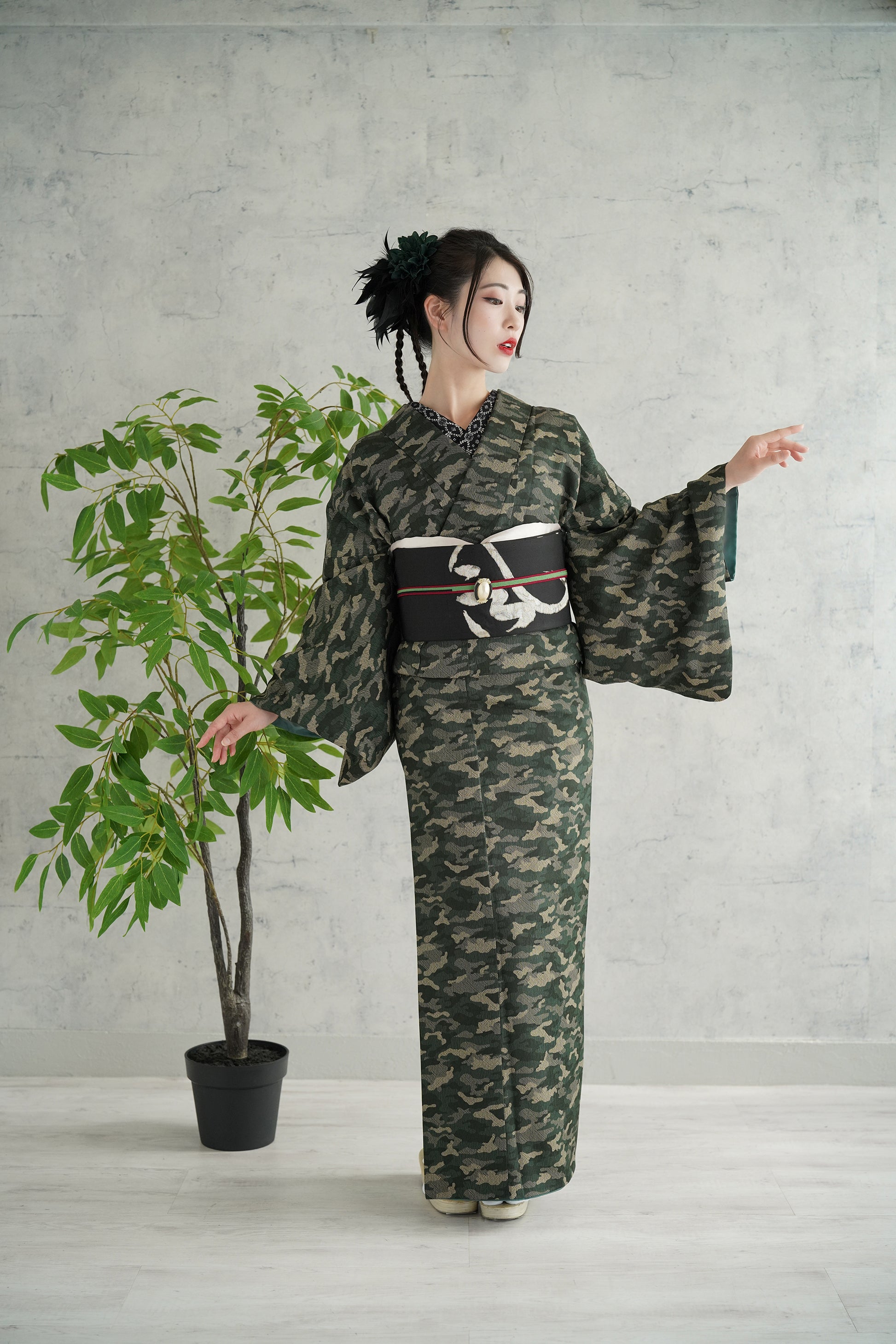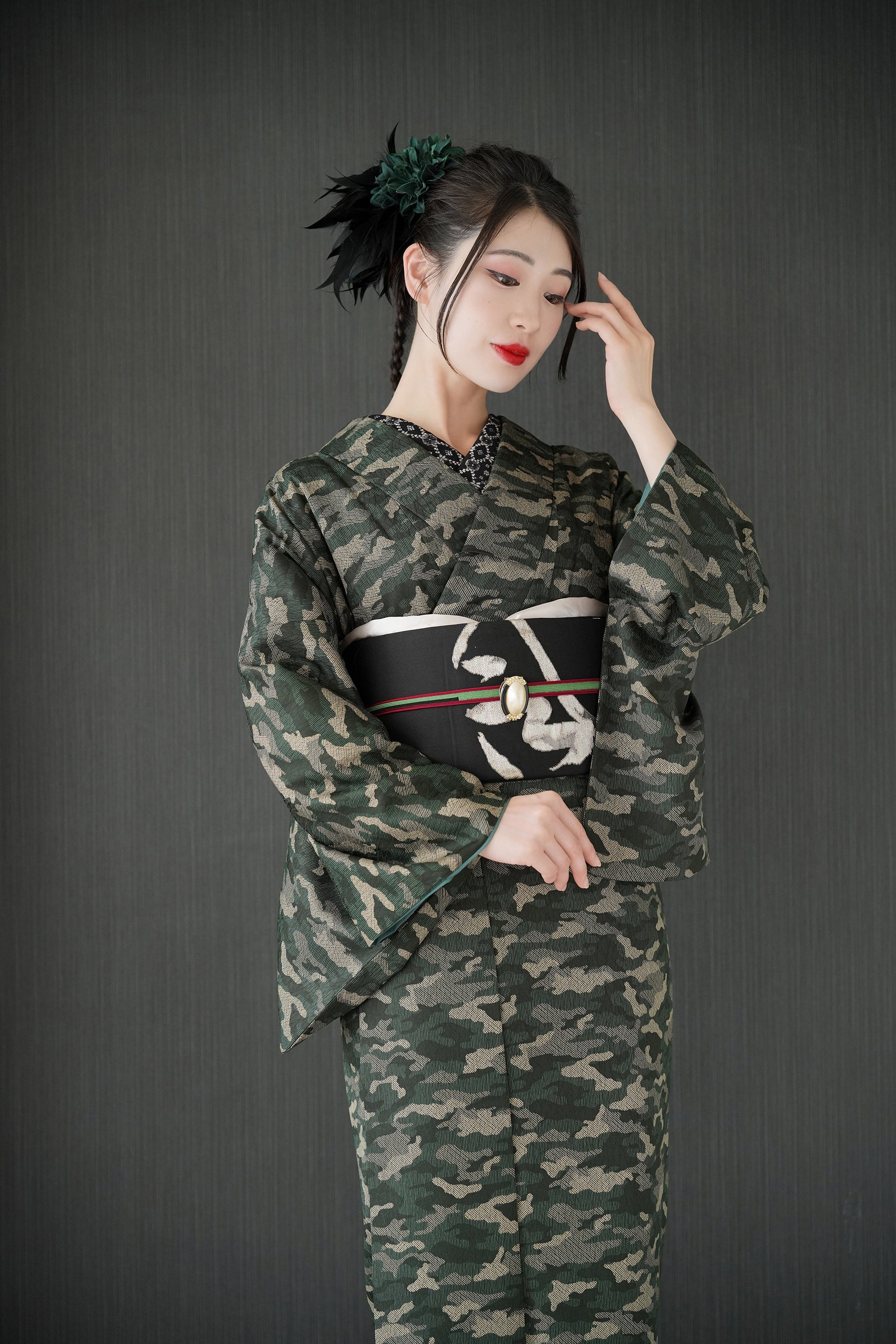 東レシルック 小紋 ~fuku~「カモフラージュ」グリーン 【袷・単衣用】