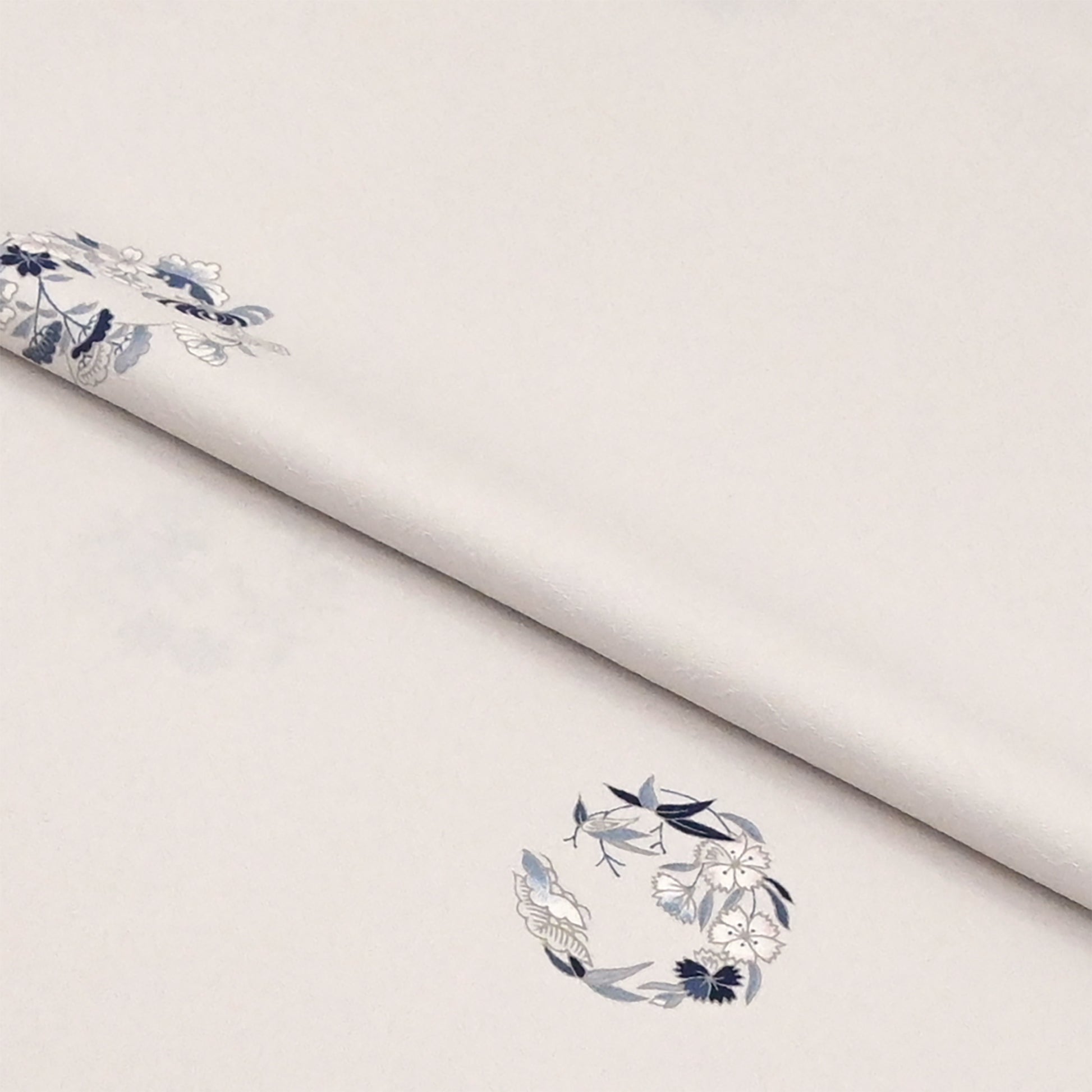 東レシルック 小紋 ~棗(なつめ)~「四季花の丸」胡粉色 【袷・単衣用】