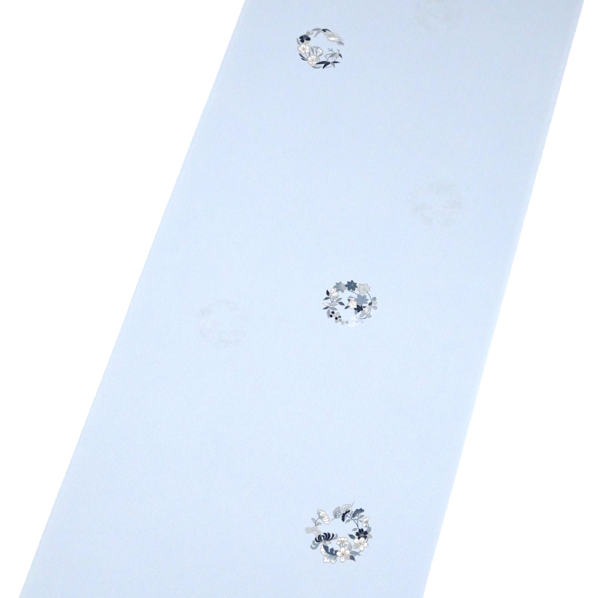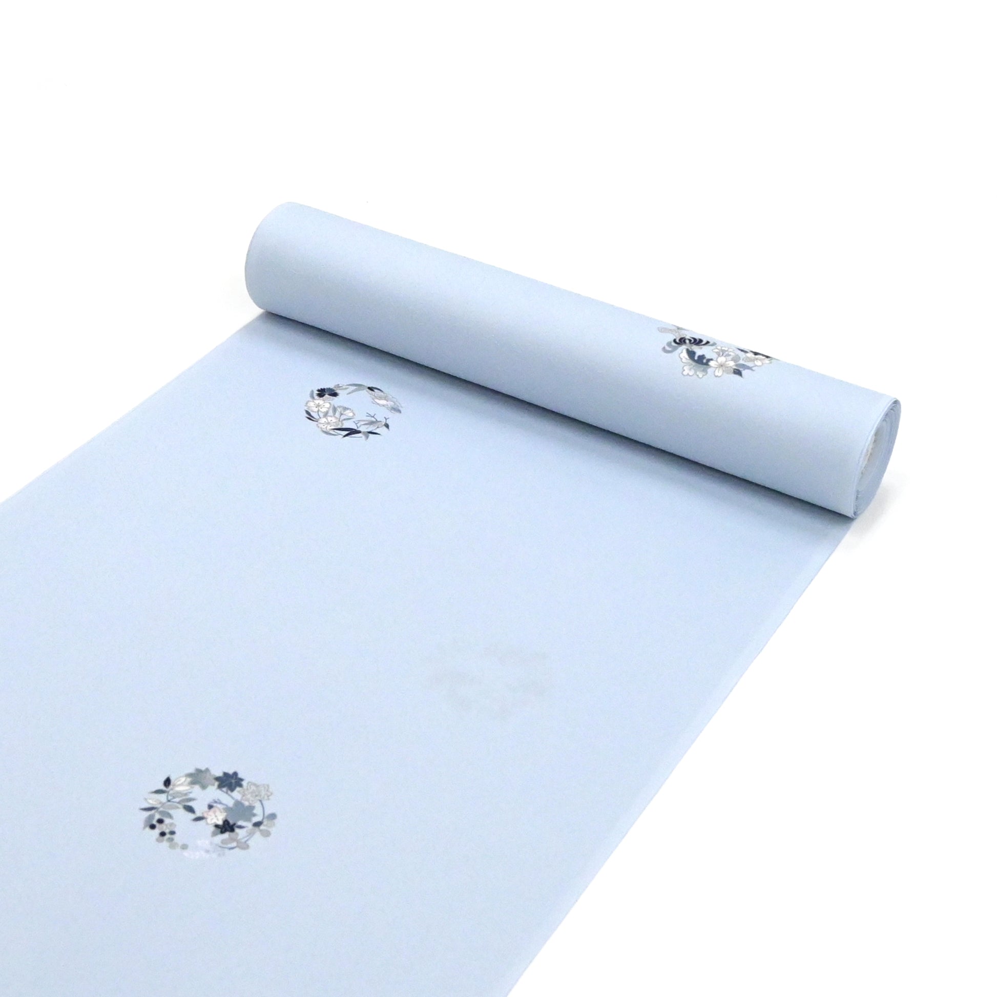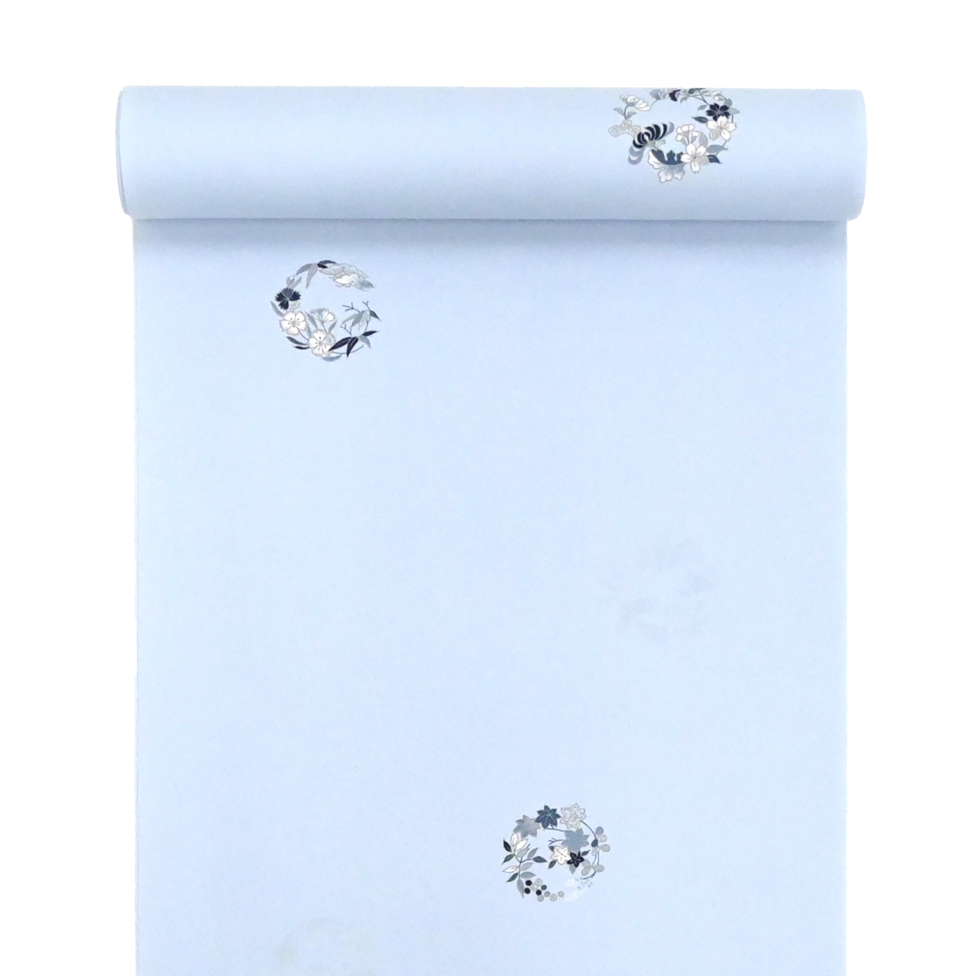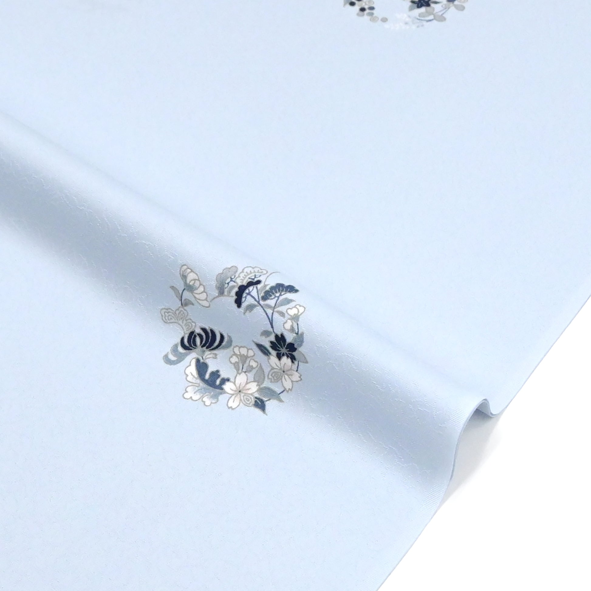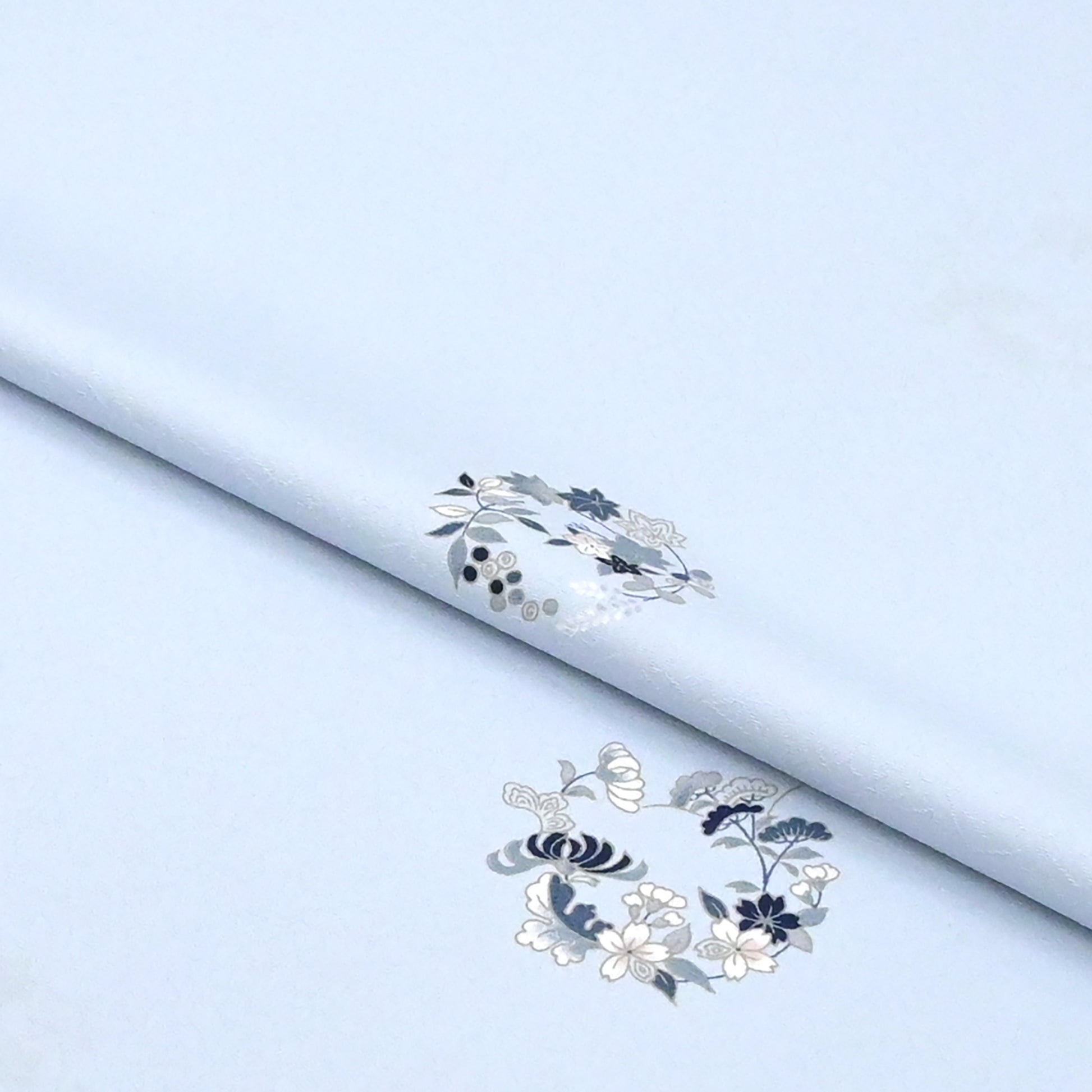 東レシルック 小紋 ~棗(なつめ)~「四季花の丸」蒼白色 【袷・単衣用】