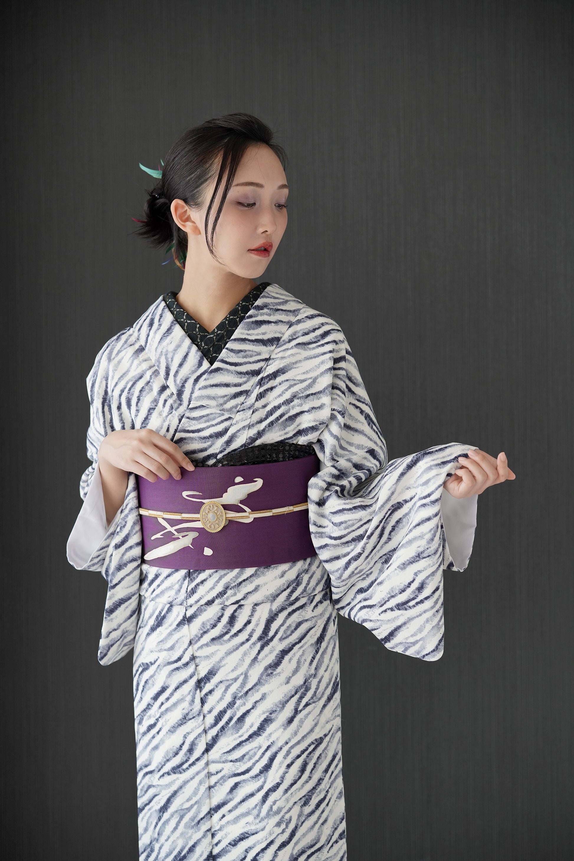 東レシルック 小紋 ~fuku~「ゼブラ」ホワイト×グレー 【袷・単衣用】
