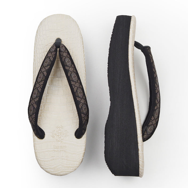 【Kimono-Factory-nono】菱屋カレンブロッソ 本場大島紬カフェ草履 クロコ/オフホワイト G-57 #女性用
