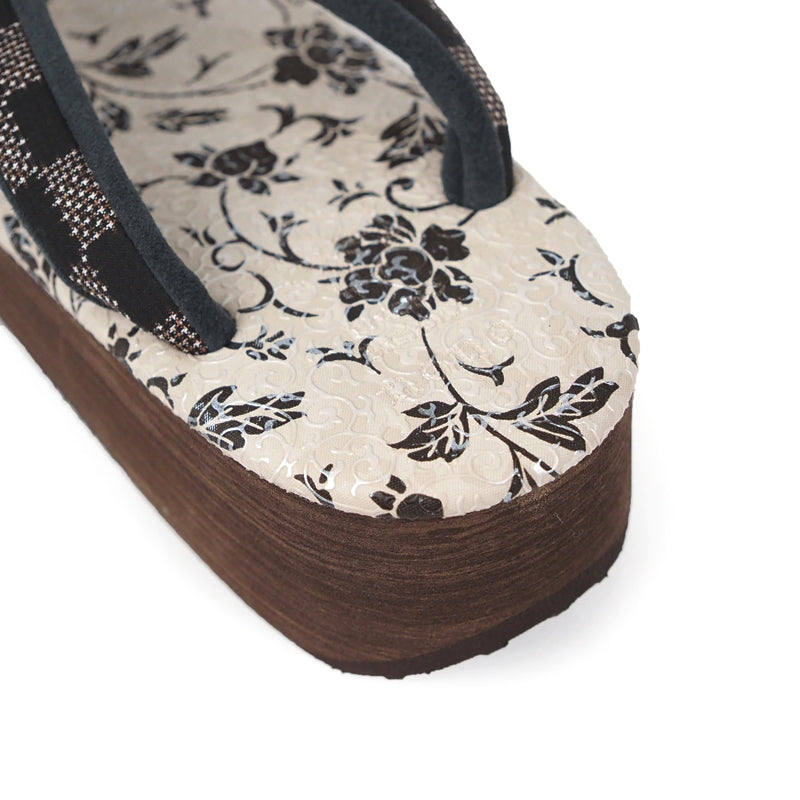 ボタニカルな葉っぱ柄が目を引くオフホワイトの草履台。唐草模様が陰影で浮かび上がります。