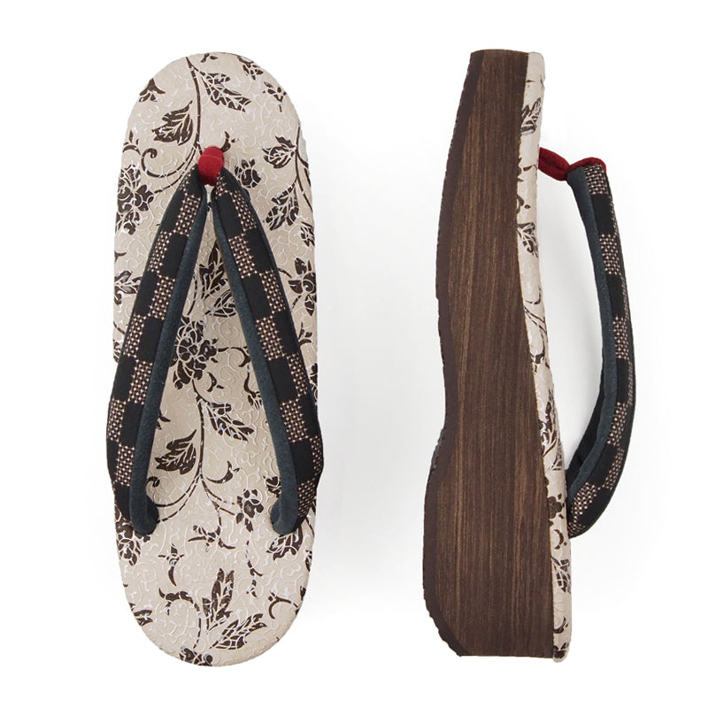 【Kimono-Factory-nono】菱屋カレンブロッソ 本場大島紬カフェ草履 唐草/オフホワイト F-12 #女性用