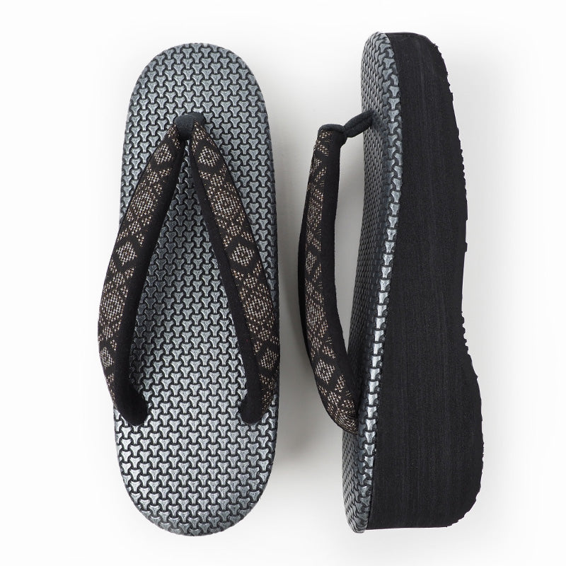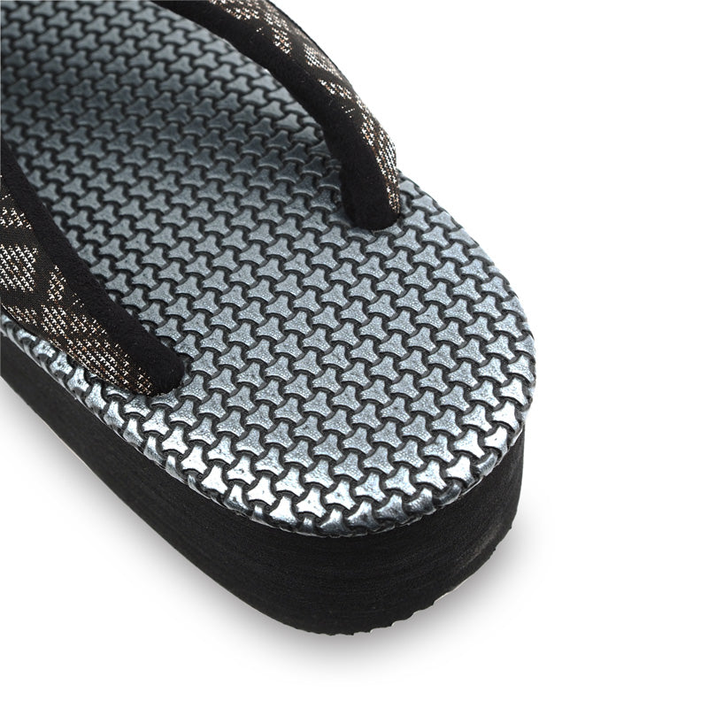 ほのかな光沢を帯びたメタリックなグレイッシュシルバーカラー毘沙門亀甲柄の草履台。