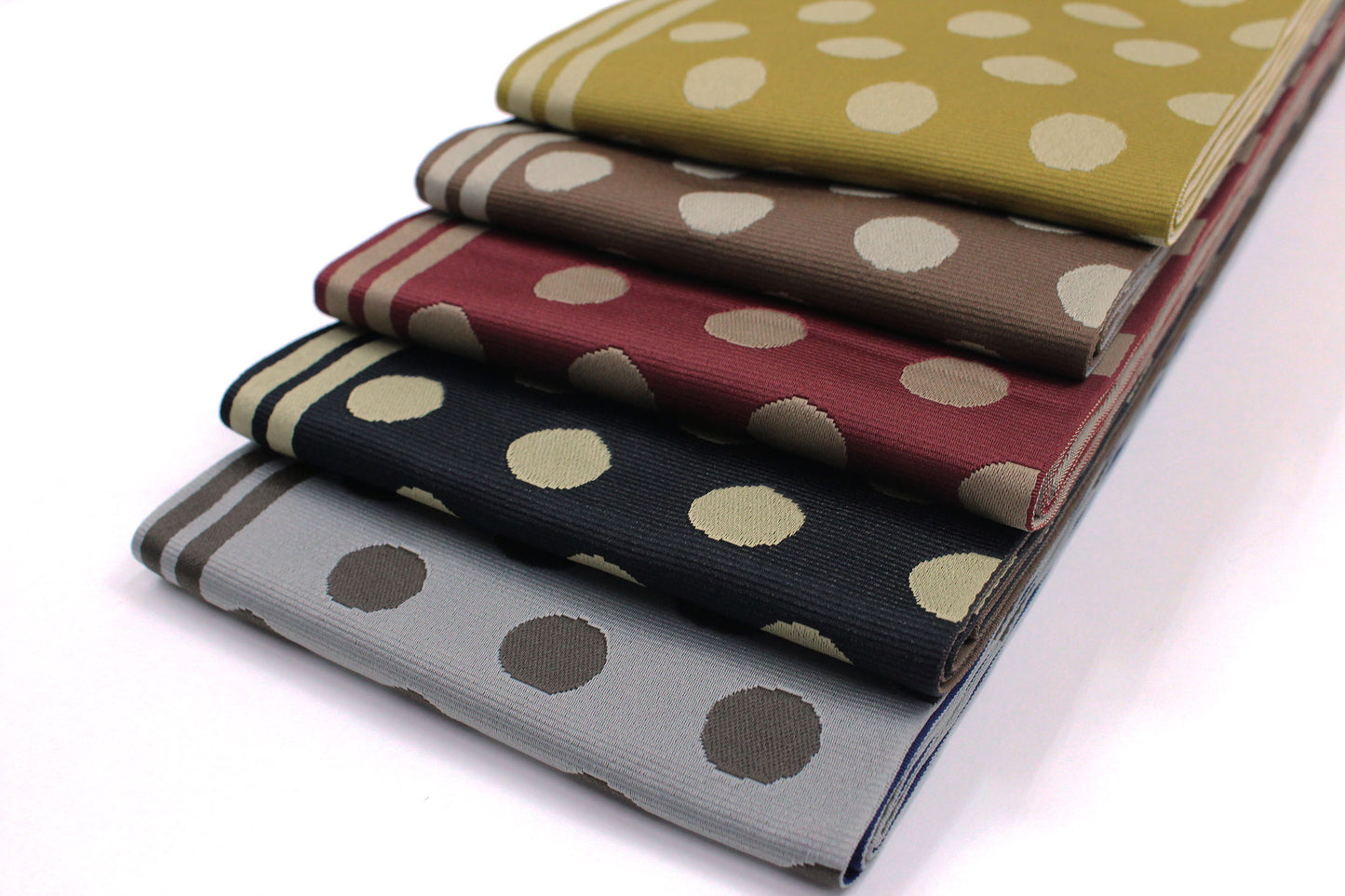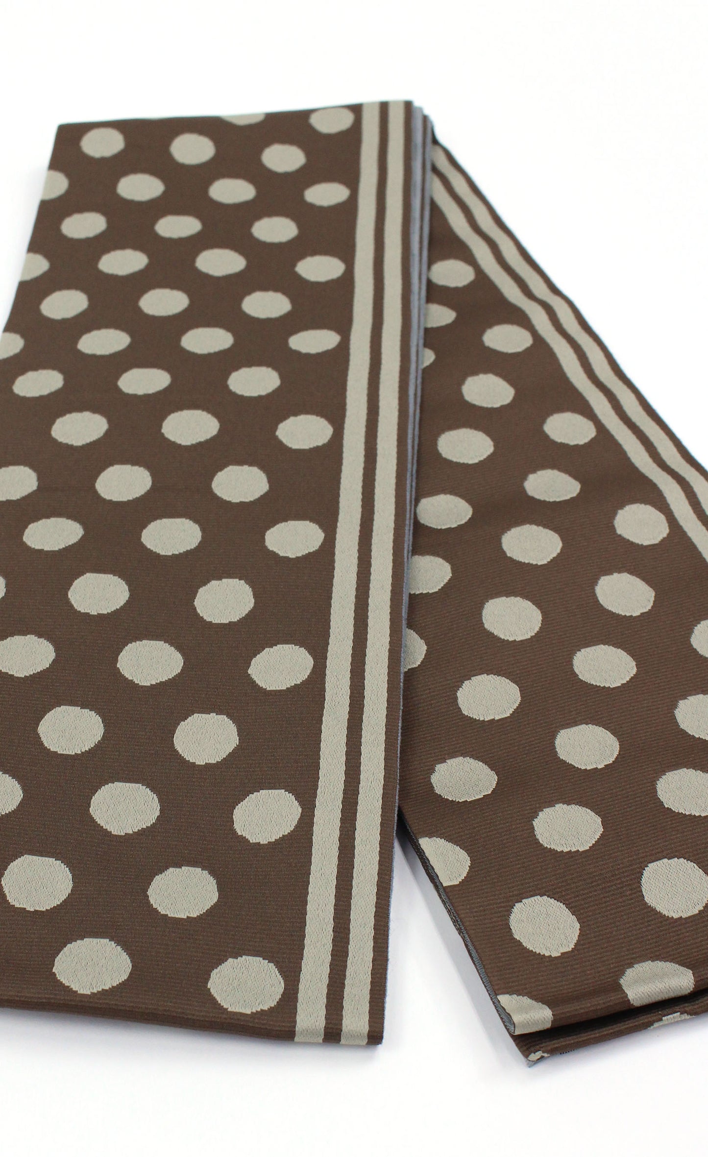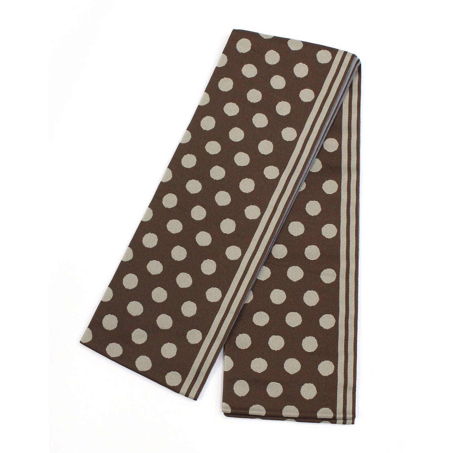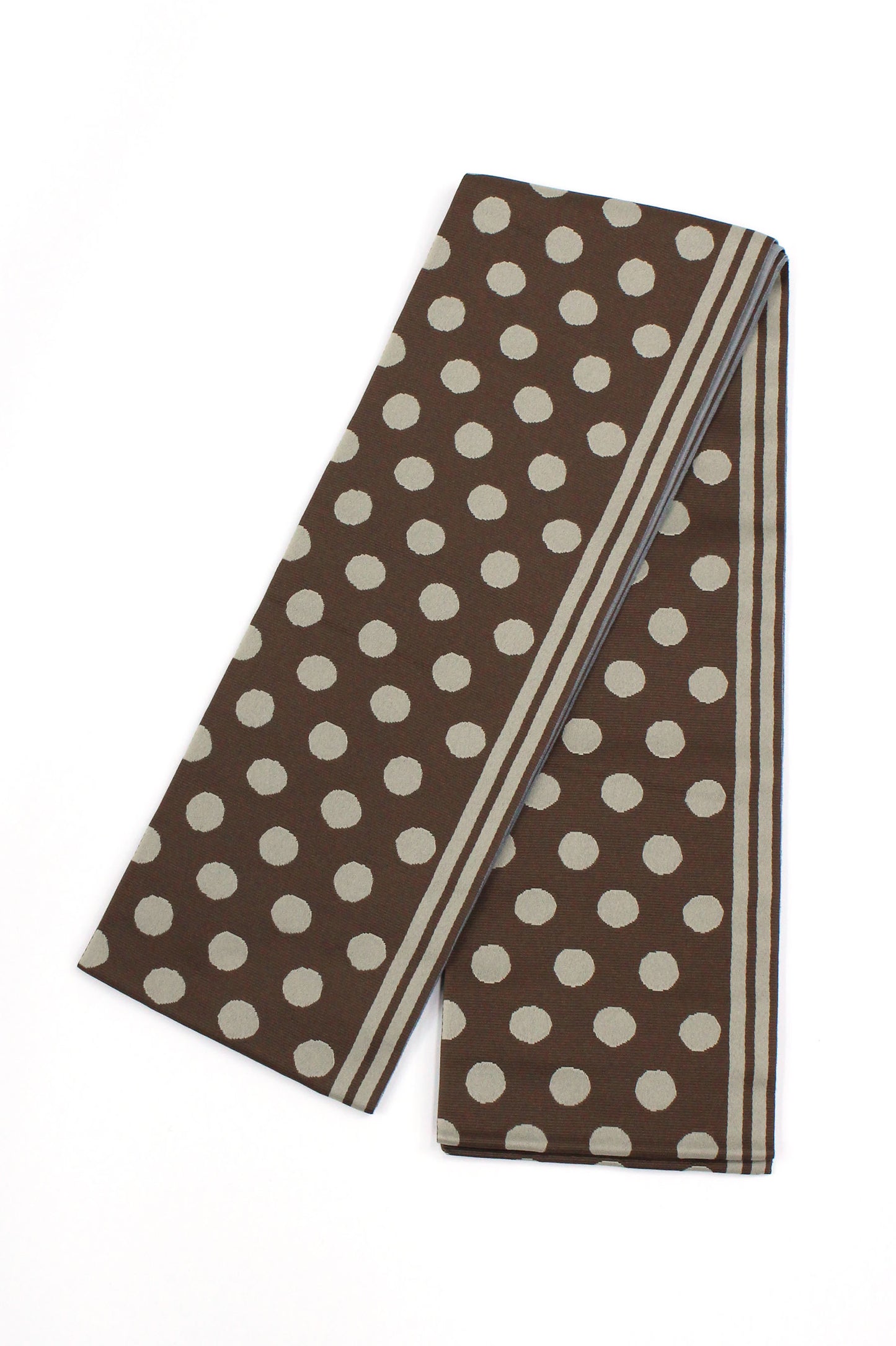カジュアル半巾帯(小袋帯) ポルカドット 燻色(ふすべいろ)