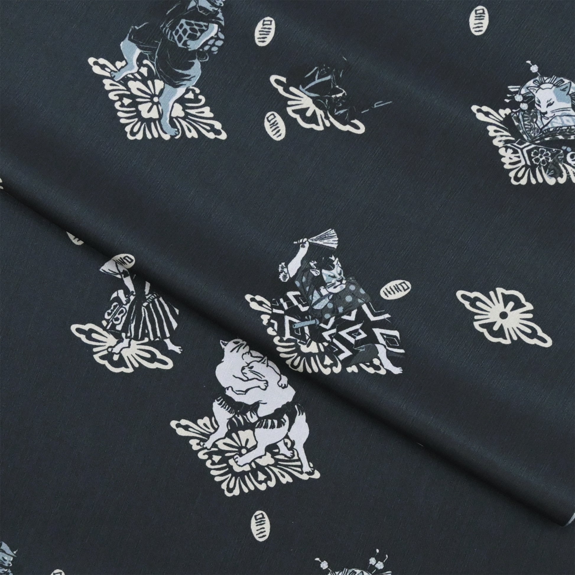 江戸時代を舞台にした猫たちの日常をコミカルに描いた撫松庵の長襦袢。