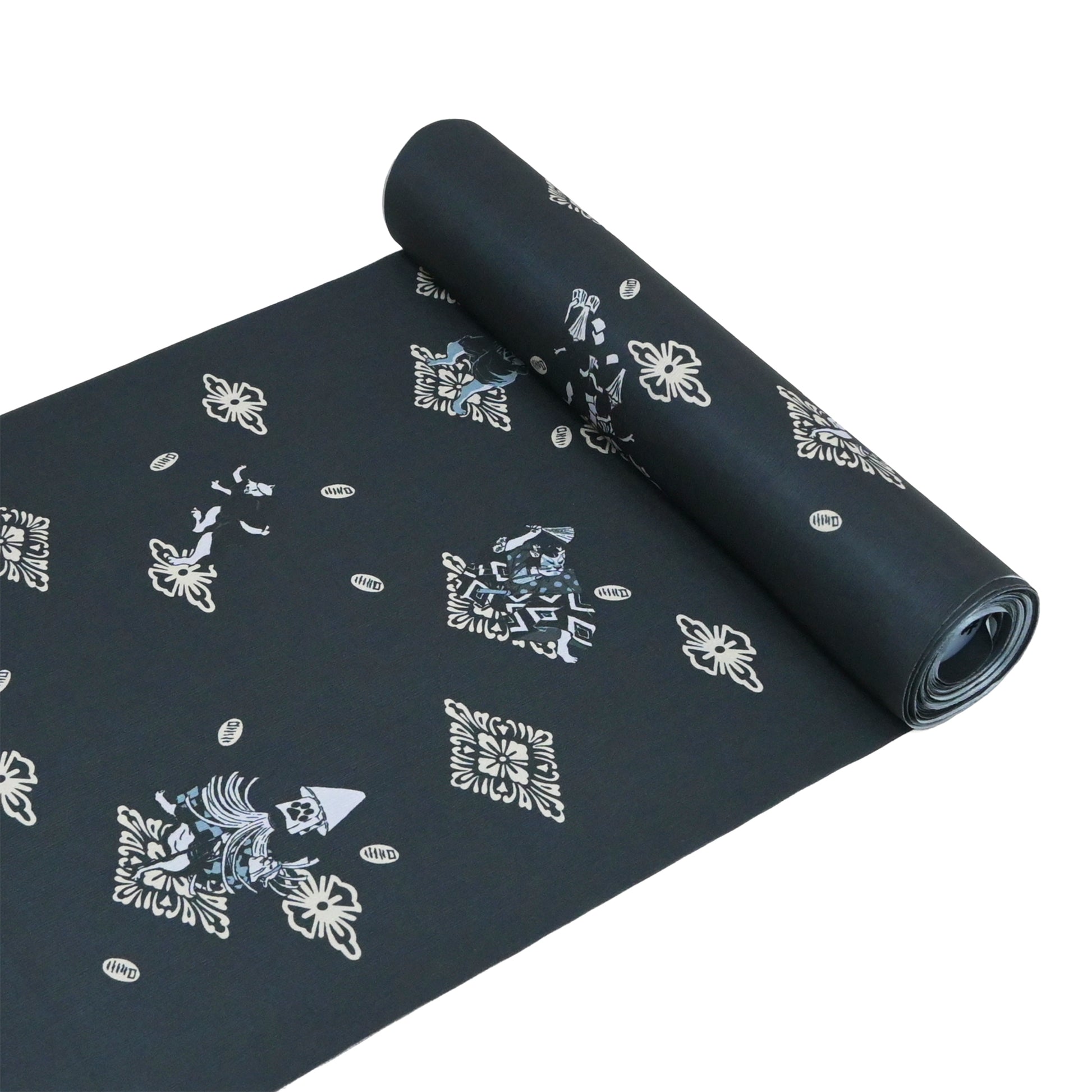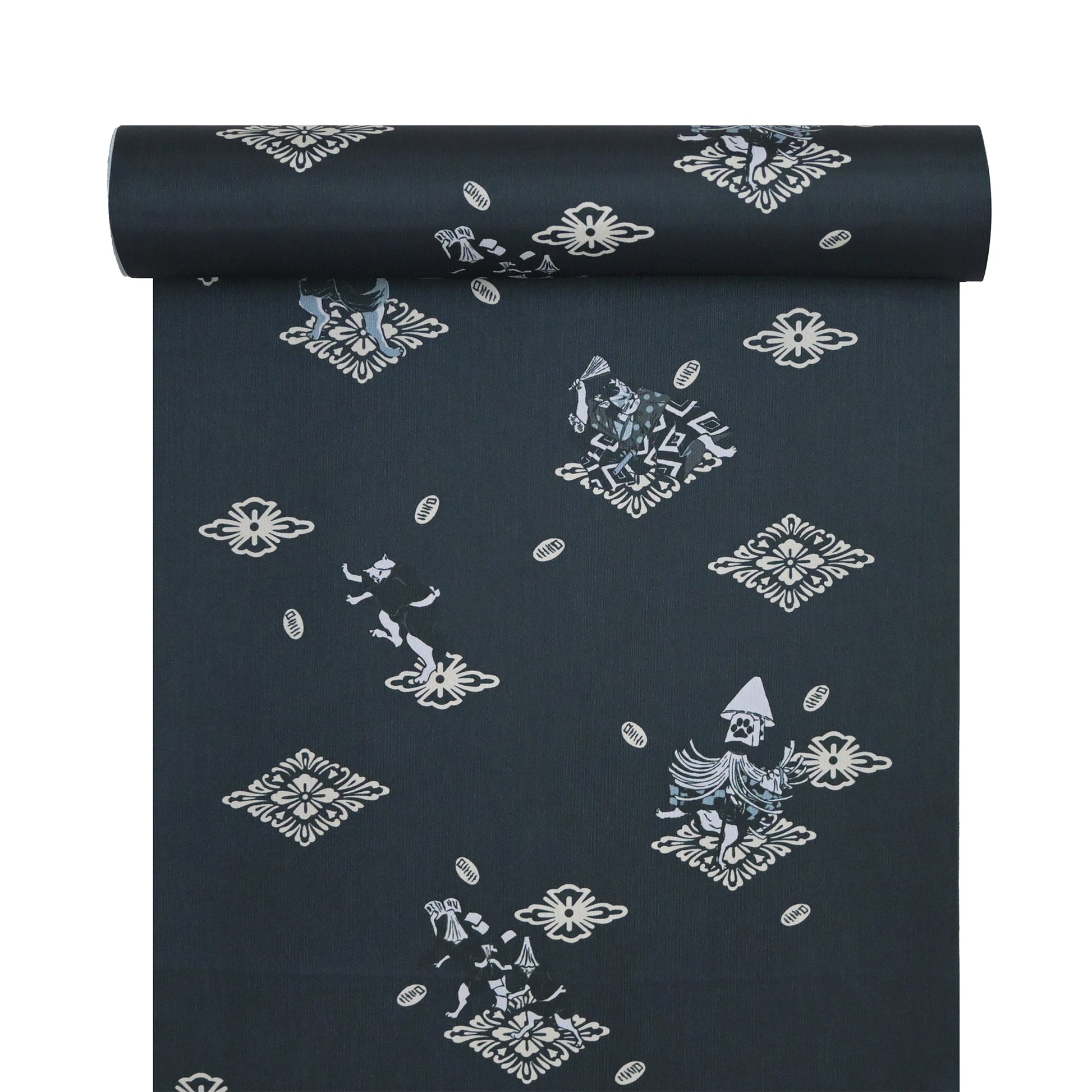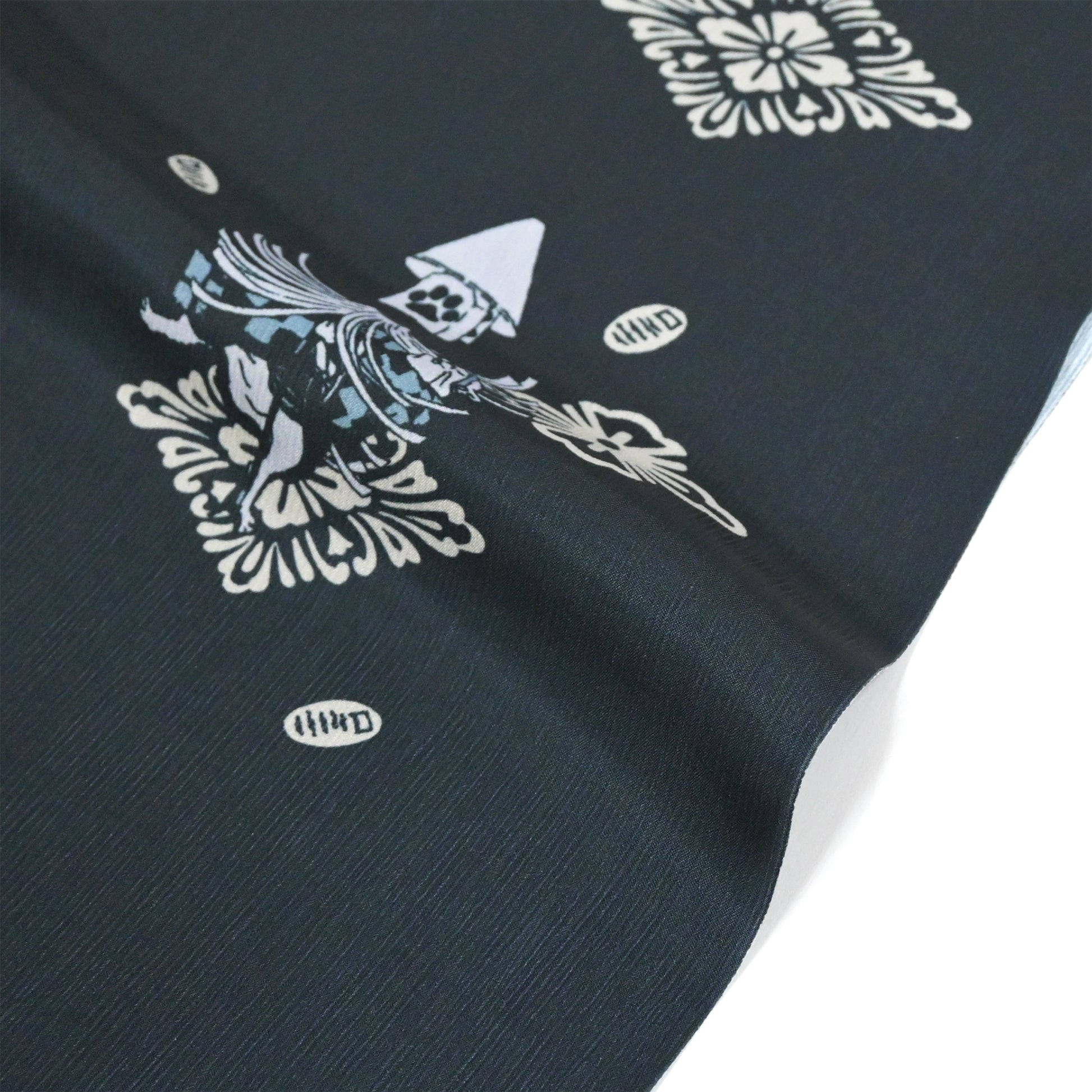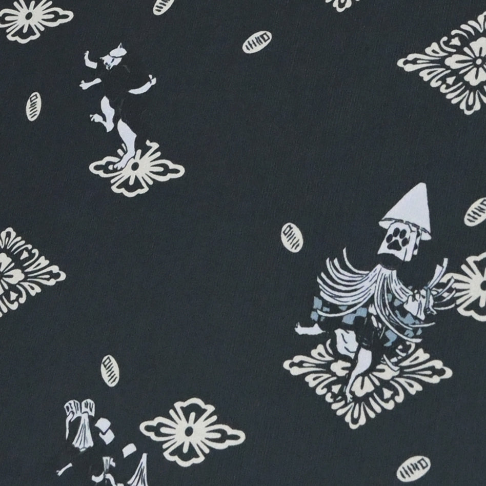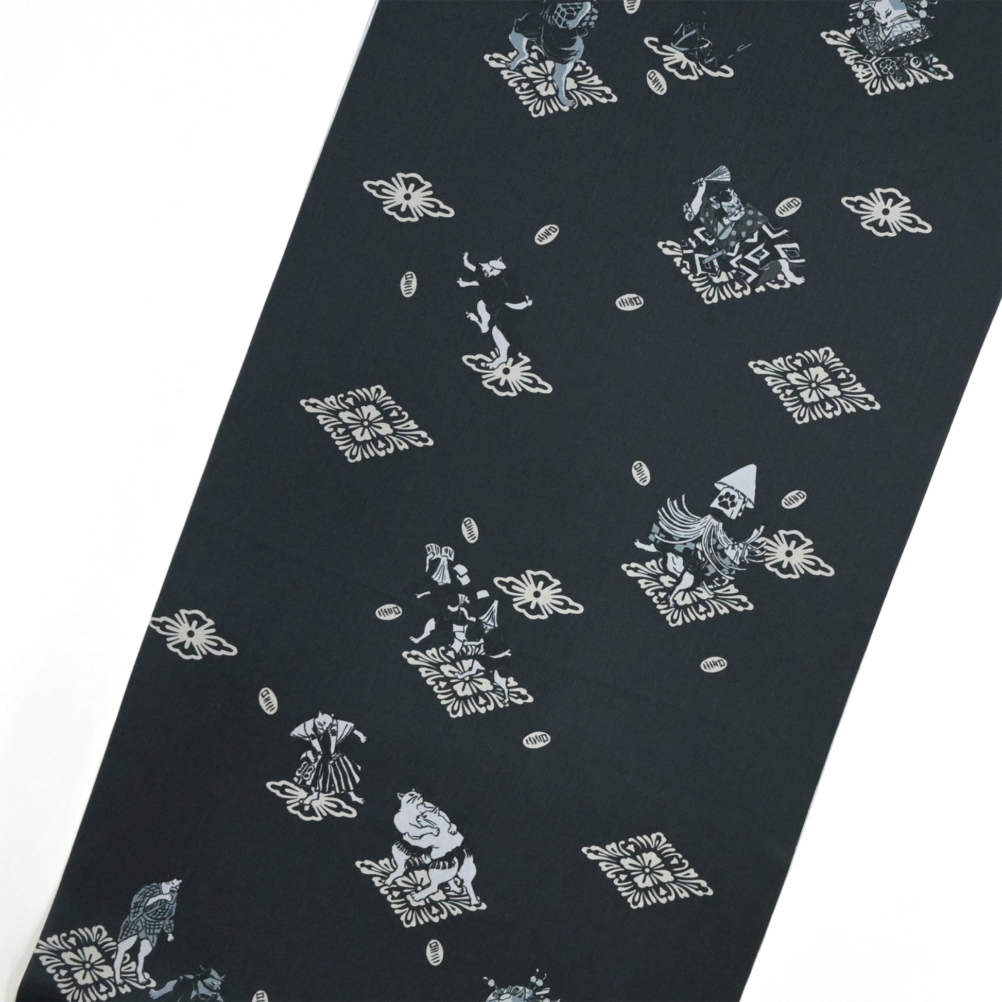 深い黒地が洗練された雰囲気を引き出し、どんな帯や着物とも相性よく合わせられます。粋で上品な印象を演出しながら、遊び心を感じさせる一枚です。