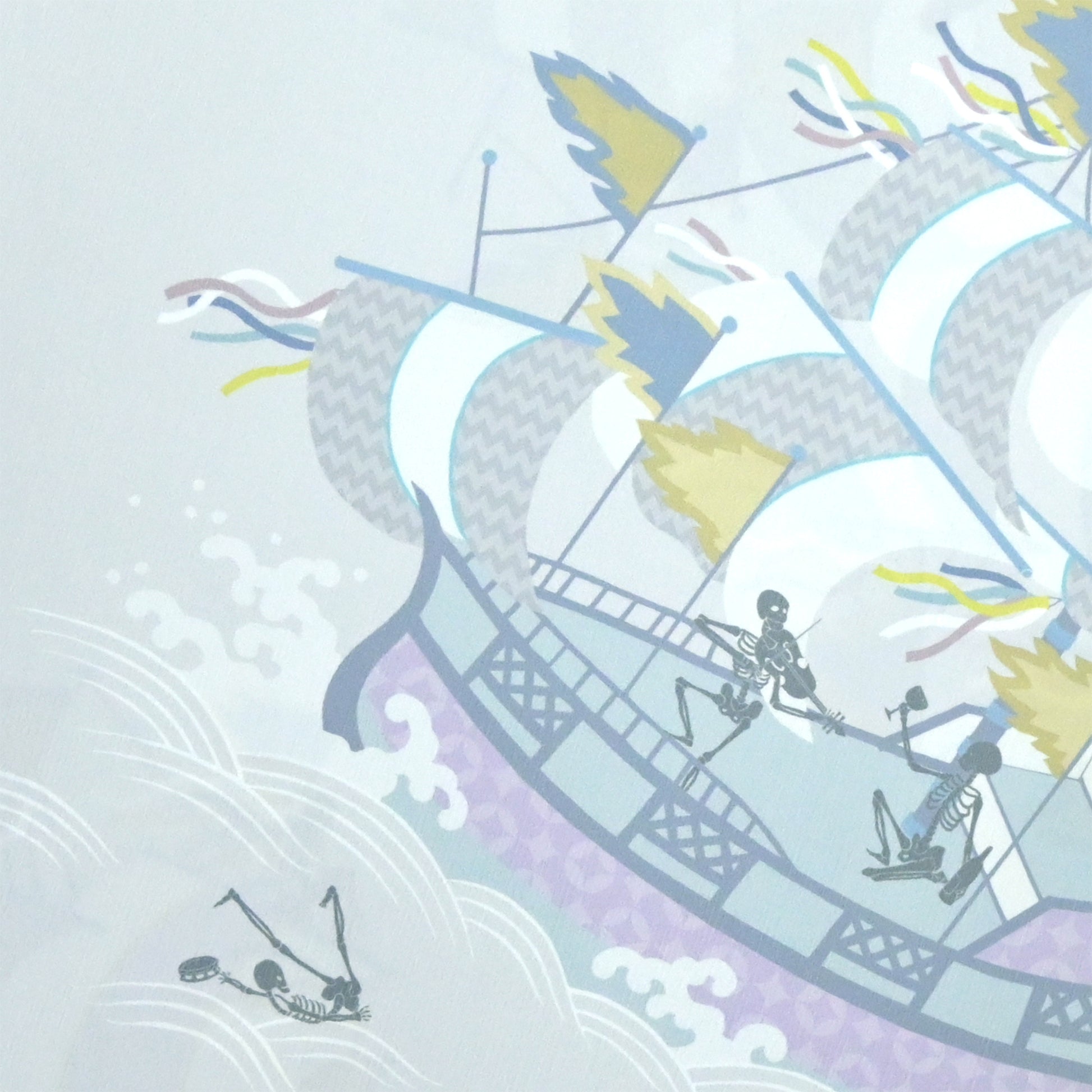 まるで海の世界をそのまま閉じ込めたように幽霊船が浮かんでいる遊ぶ心あふれるデザインです。