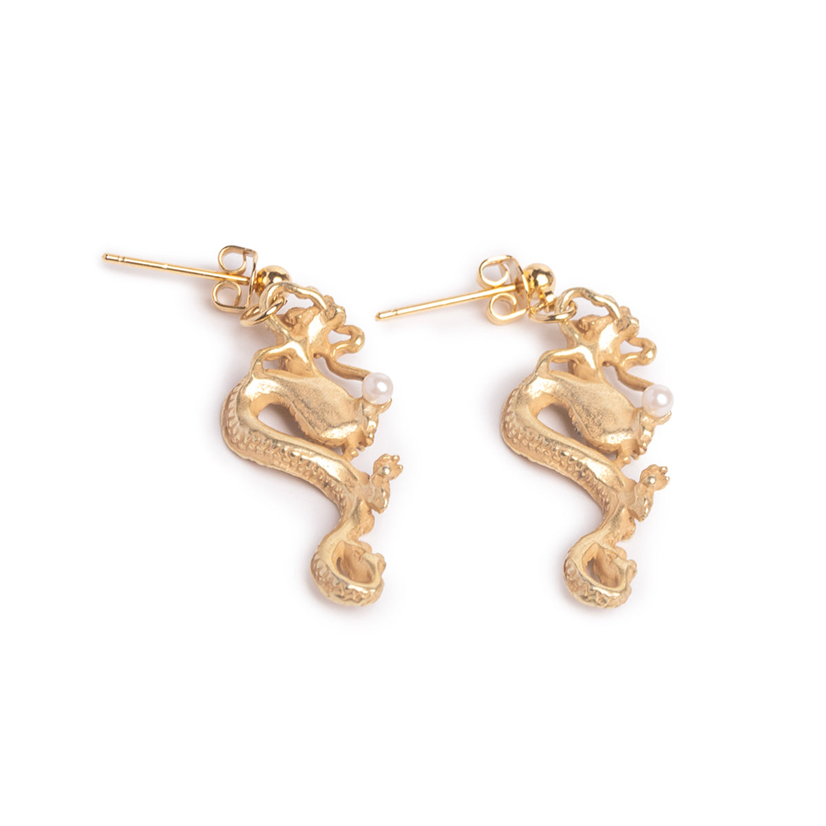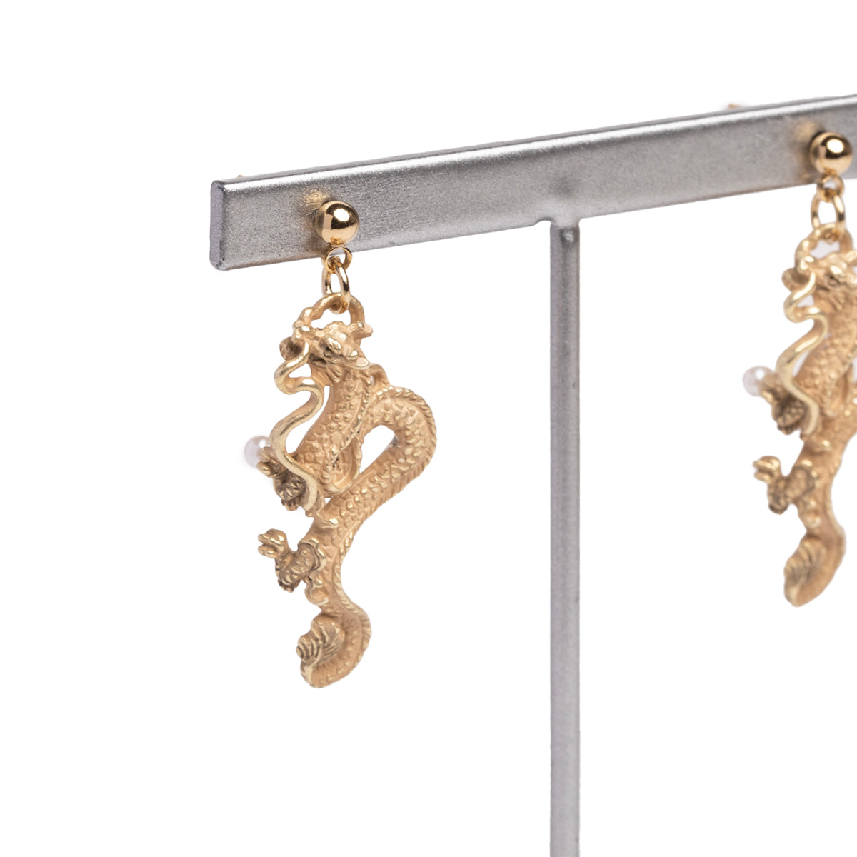 落ち着きのある肌なじみの良いマットゴールドで表現した龍は、ウロコや髭、鋭い爪まで丁寧に造形され、繊細さが華やかさを際立たせる美しいアイテムです。