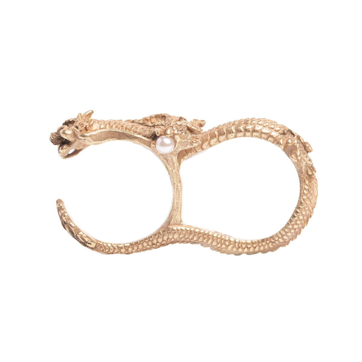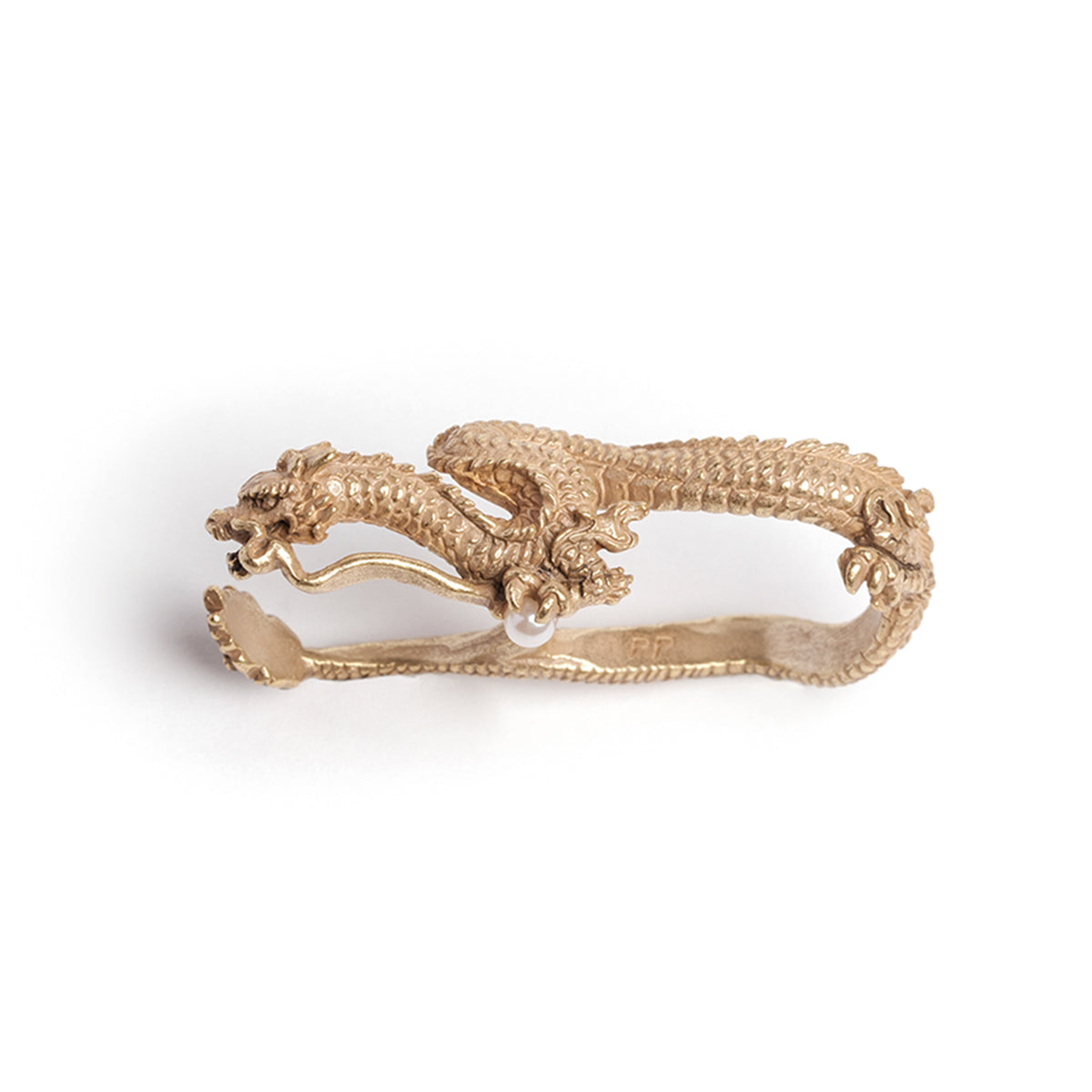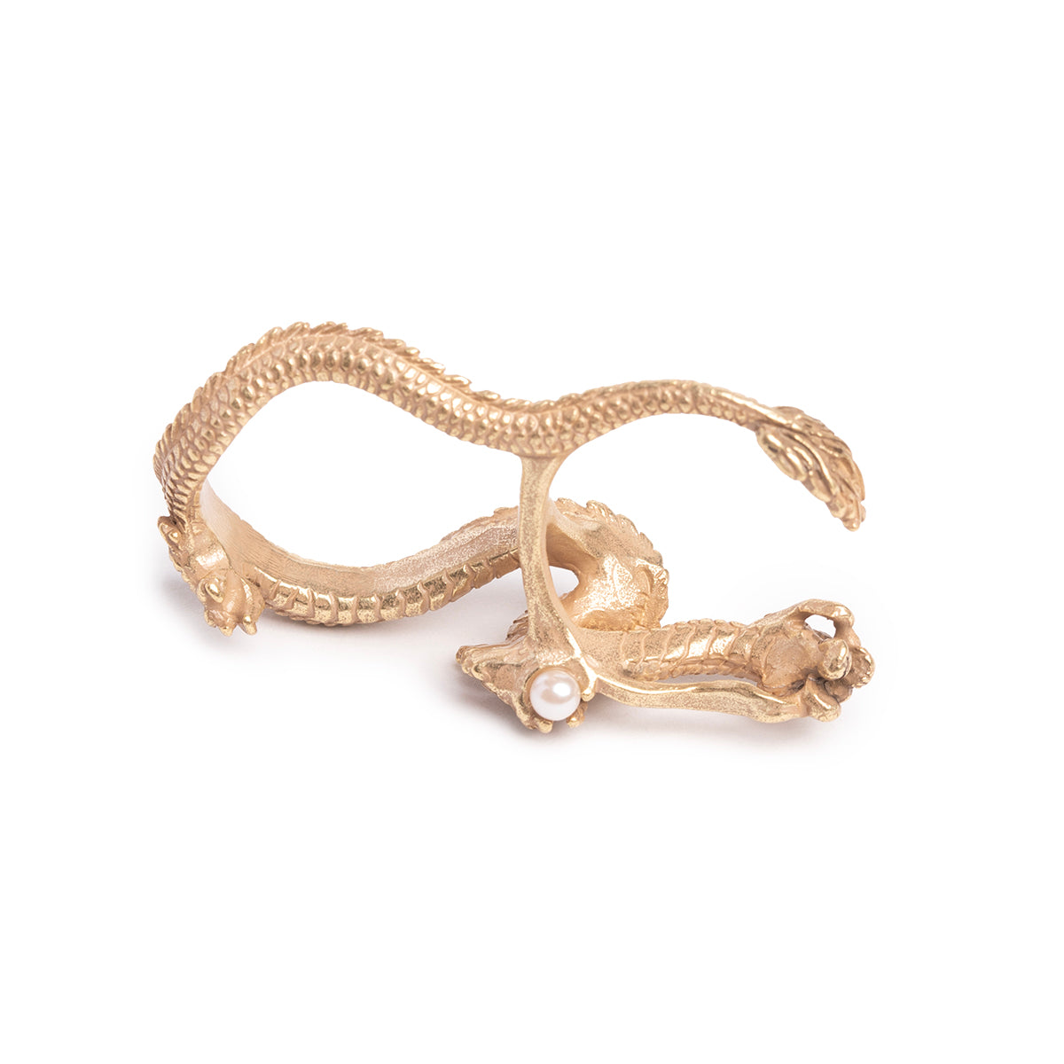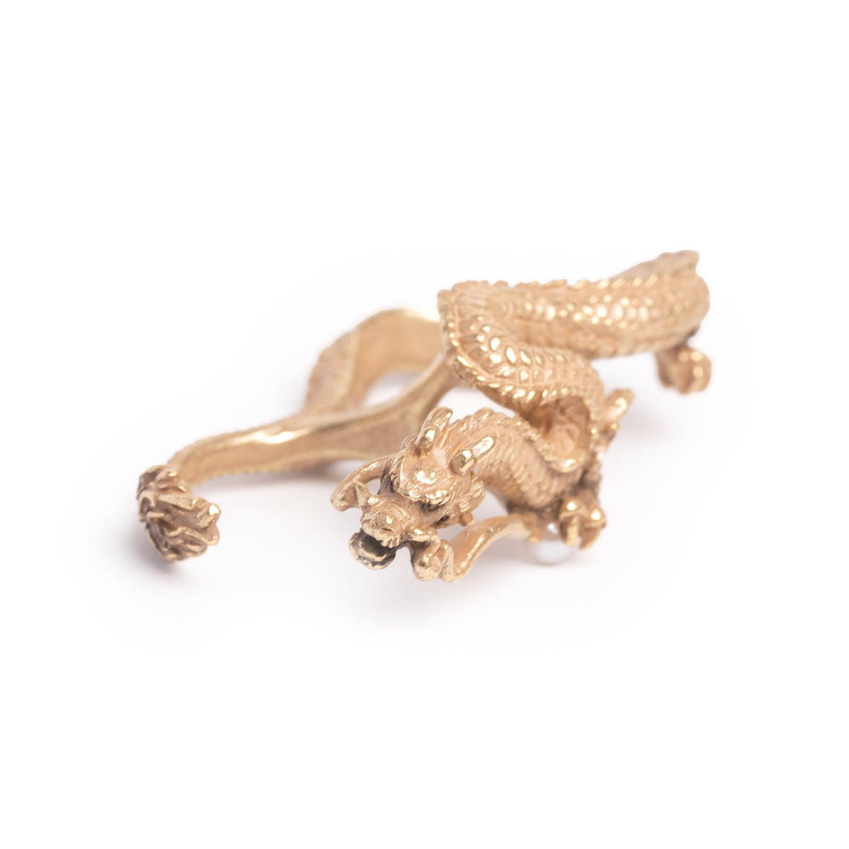 龍の手にしっかりと掴まれたパールは小粒で主張が強すぎず、柔らかな光沢がさりげない上品さを演出します。