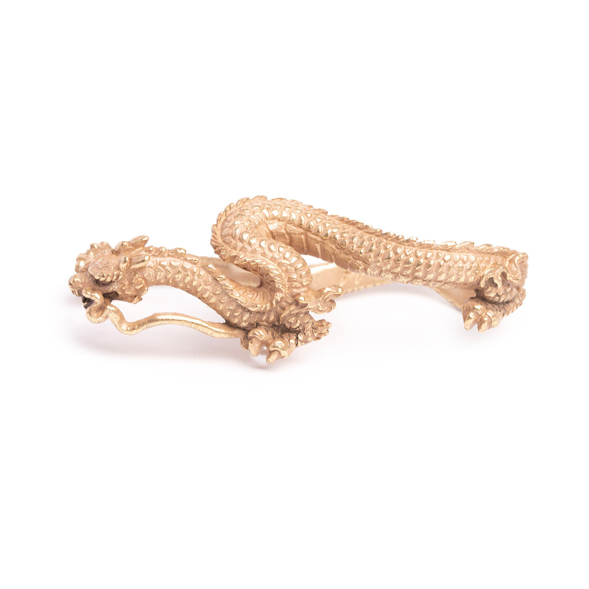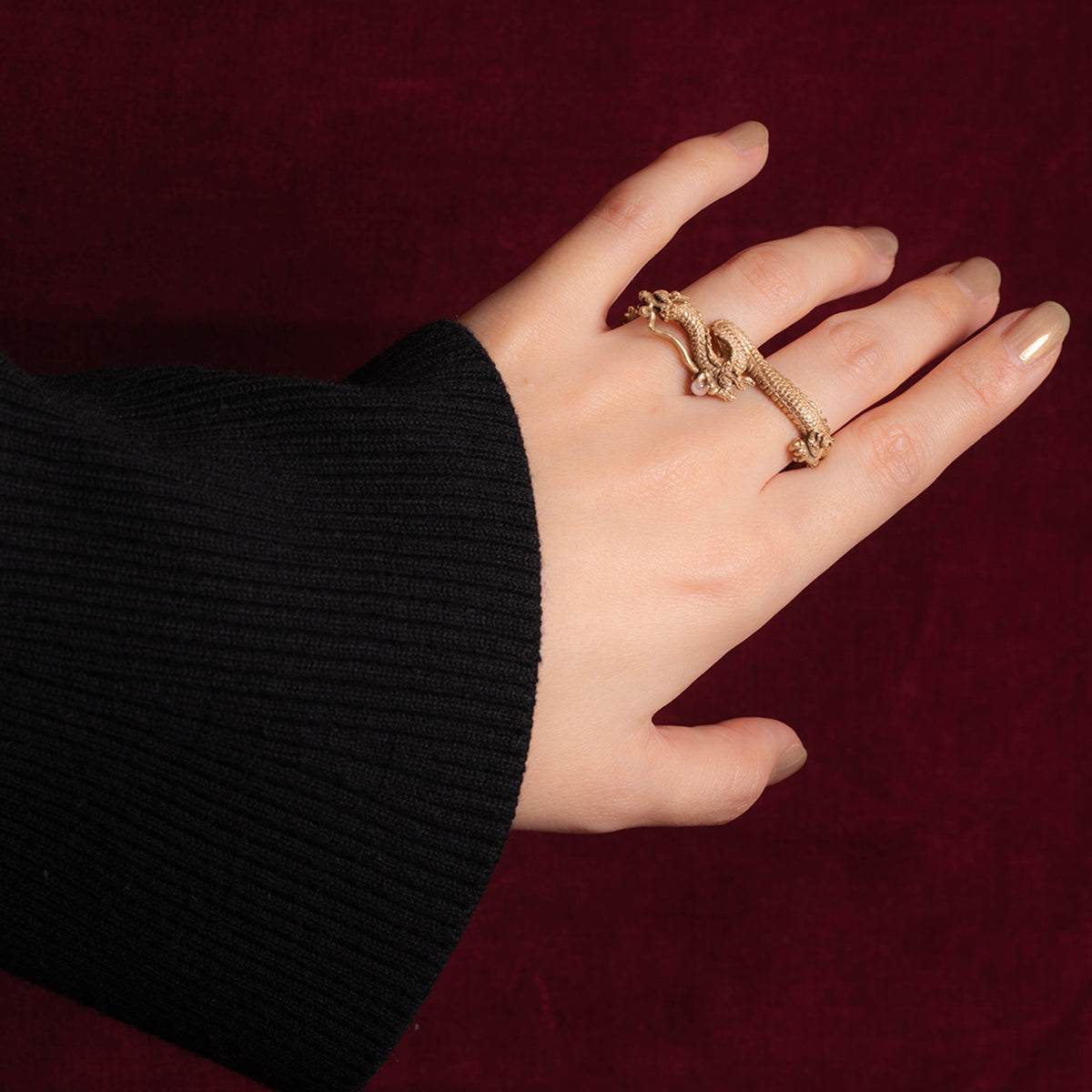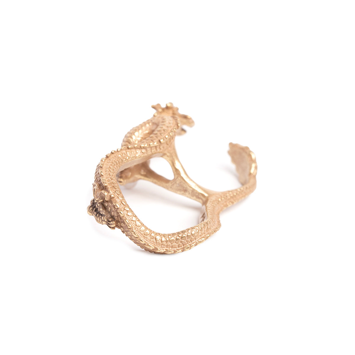 落ち着きのある肌なじみの良いマットゴールドで表現した龍は、ウロコや髭、鋭い爪まで丁寧に造形され、繊細さが華やかさを際立たせる美しいアイテムです。