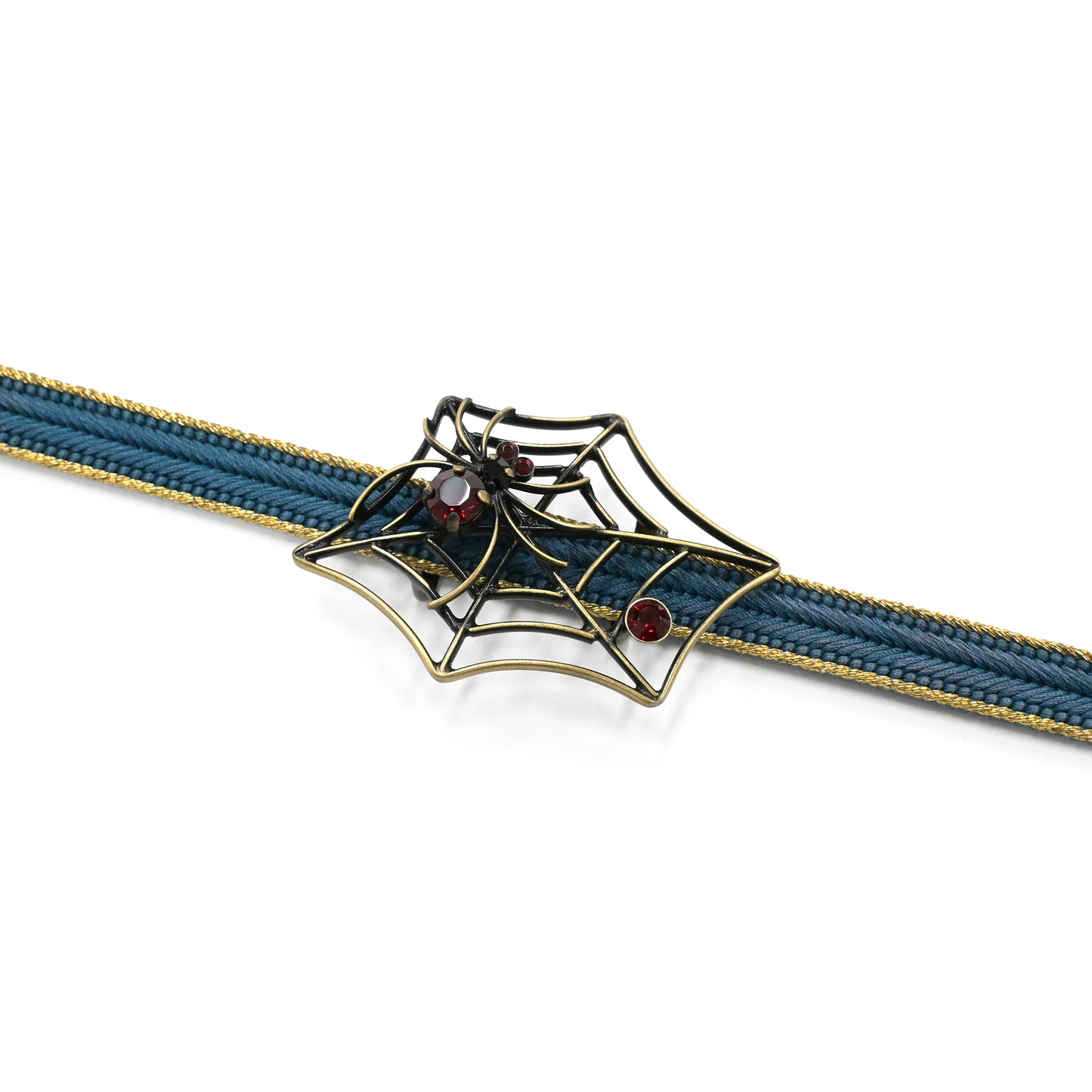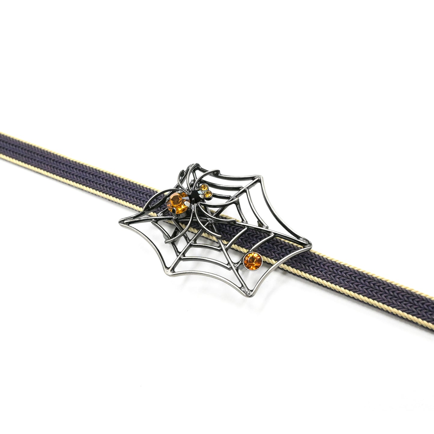 個性的な蜘蛛モチーフ。蜘蛛の体と蜘蛛の巣についた露に見立てたクリスタルがキラリと輝きます。