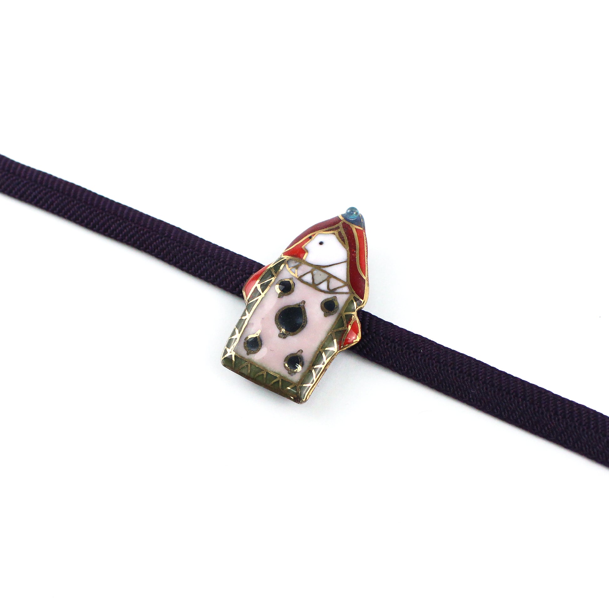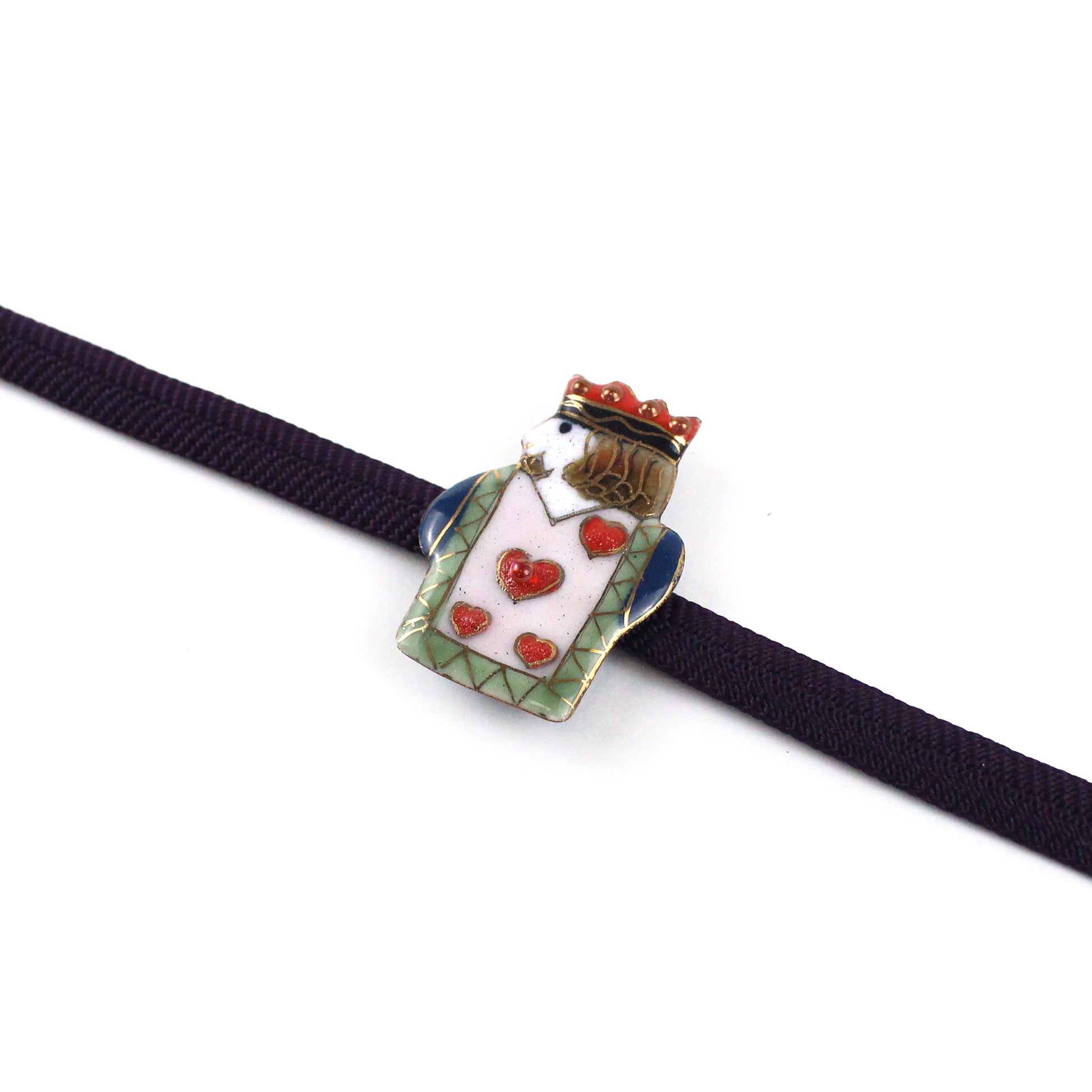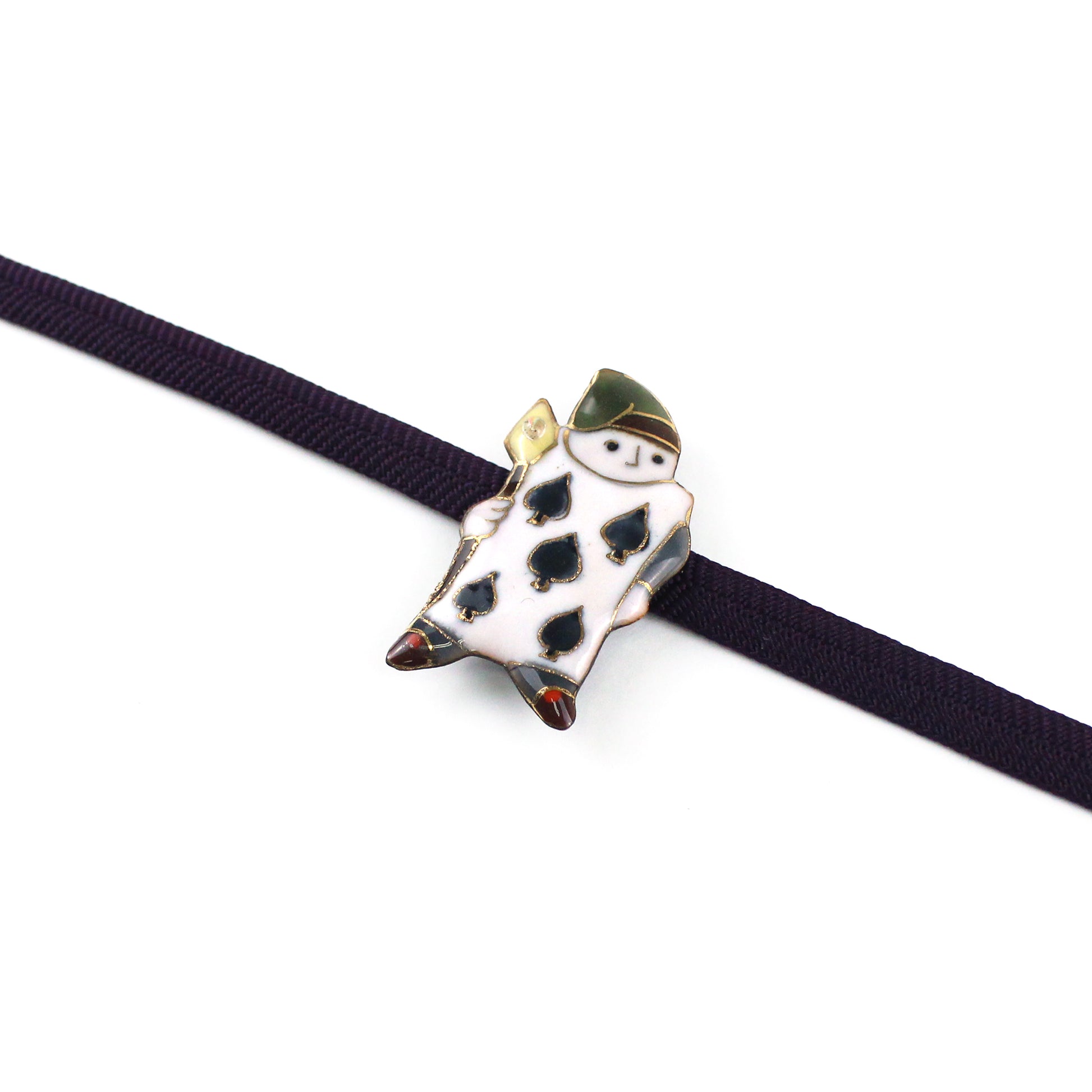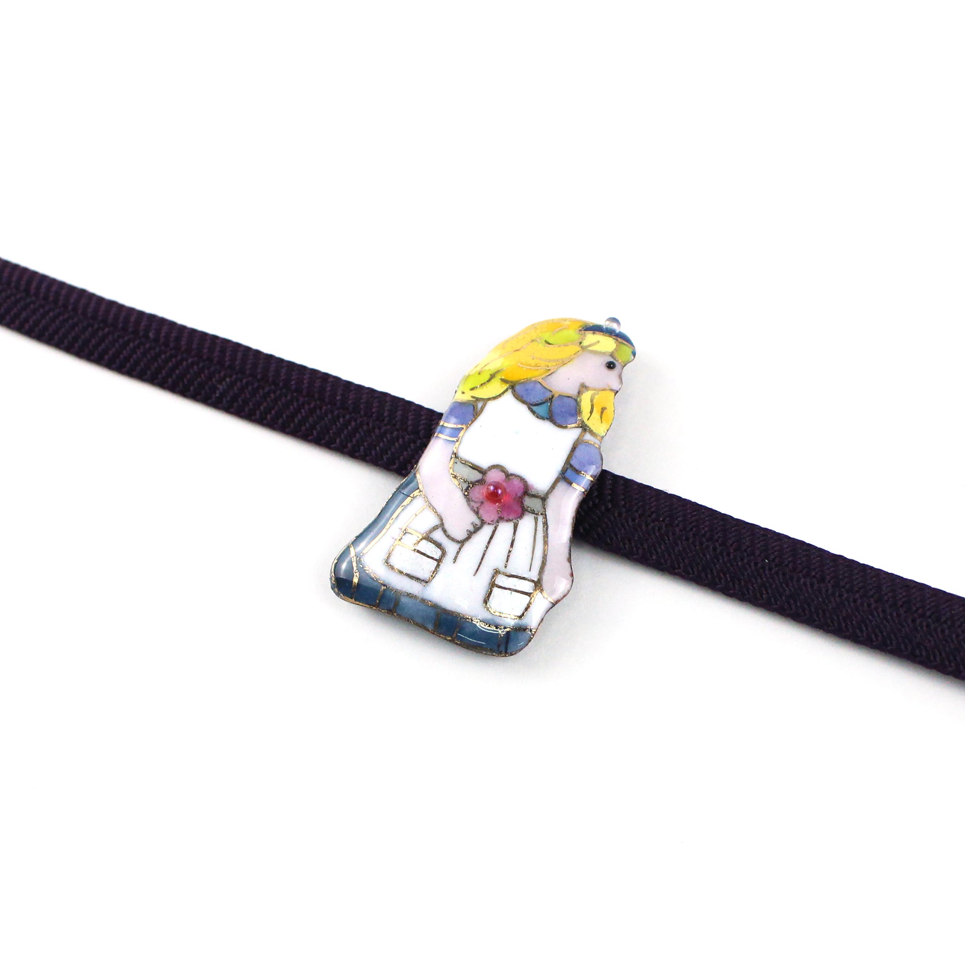 童話「不思議の国のアリス」をモチーフに、七宝焼で丁寧に一点ずつ手作りした愛らしい帯留めです。色鮮やかで繊細なデザインが、和装に遊び心をプラスします。三分紐を通して着物や浴衣のアクセントに。毎日のコーディネートに楽しさと個性を届ける、小さな魔法のようなアイテムです。