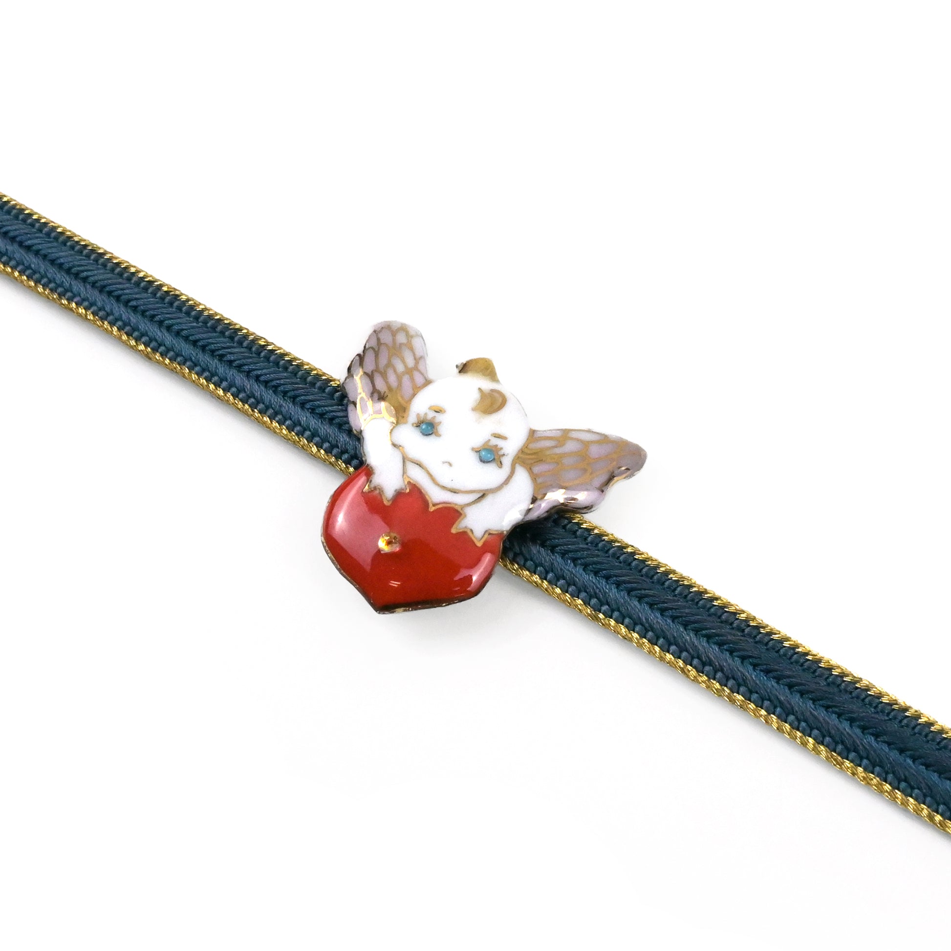 天使をモチーフにした、七宝焼でひとつひとつ丁寧に手作りされた愛らしい帯留めです。三分紐に通して簡単に使えるので、着物コーデに遊び心のあるアクセントをプラス。ふわっと優しい天使のデザインが、あなたの和装スタイルを楽しく彩ります。毎日の着付けがもっと楽しくなる、そんな小さな魔法のアイテムです。友達とのお出かけや特別な日にもぴったりな、キュートな帯留めをぜひお試しください。