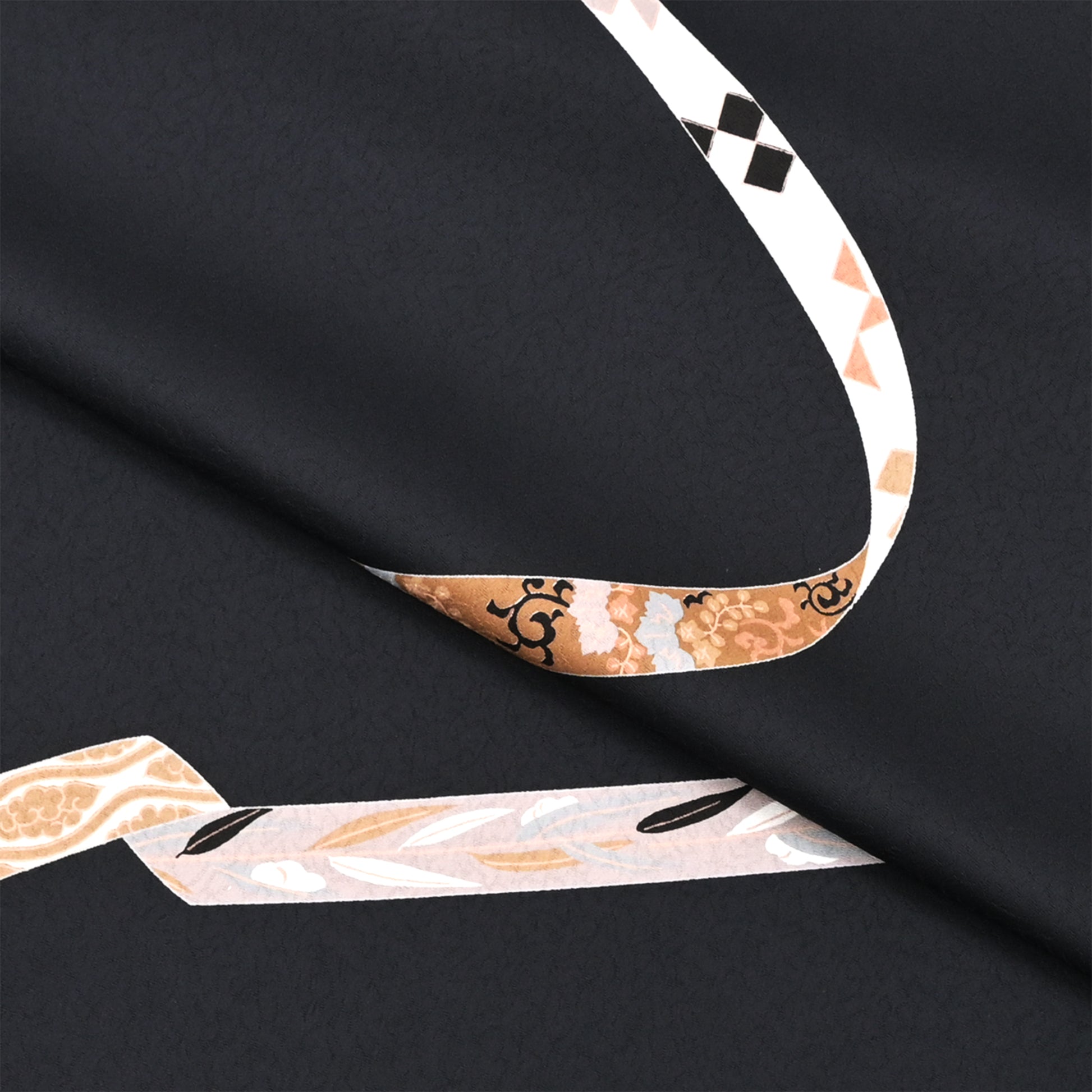東レシルック 小紋 ~大久保信子流きもの~「鬘帯(かずらおび)」 黒 【袷・単衣用】