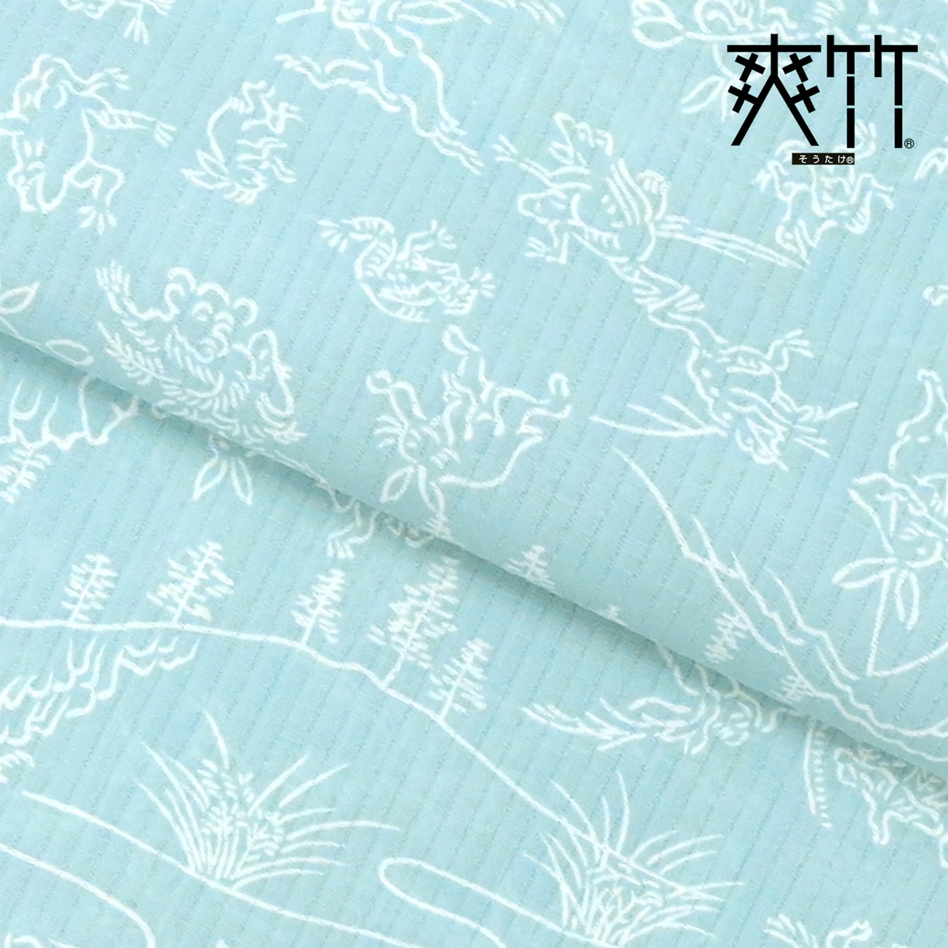 【東レ爽竹】新開発ストレッチ長襦袢 「鳥獣戯画」空色鼠 #スリーシーズン
