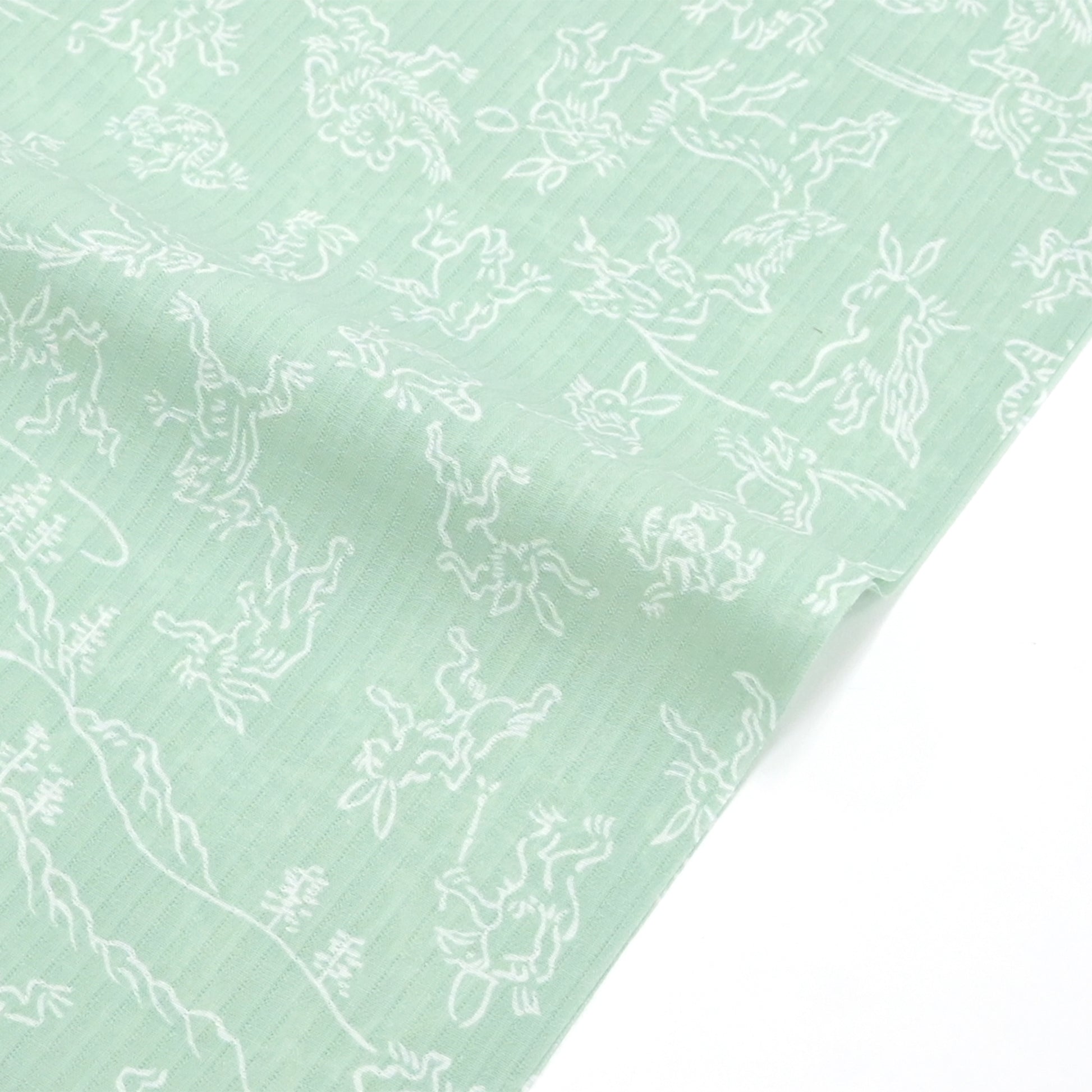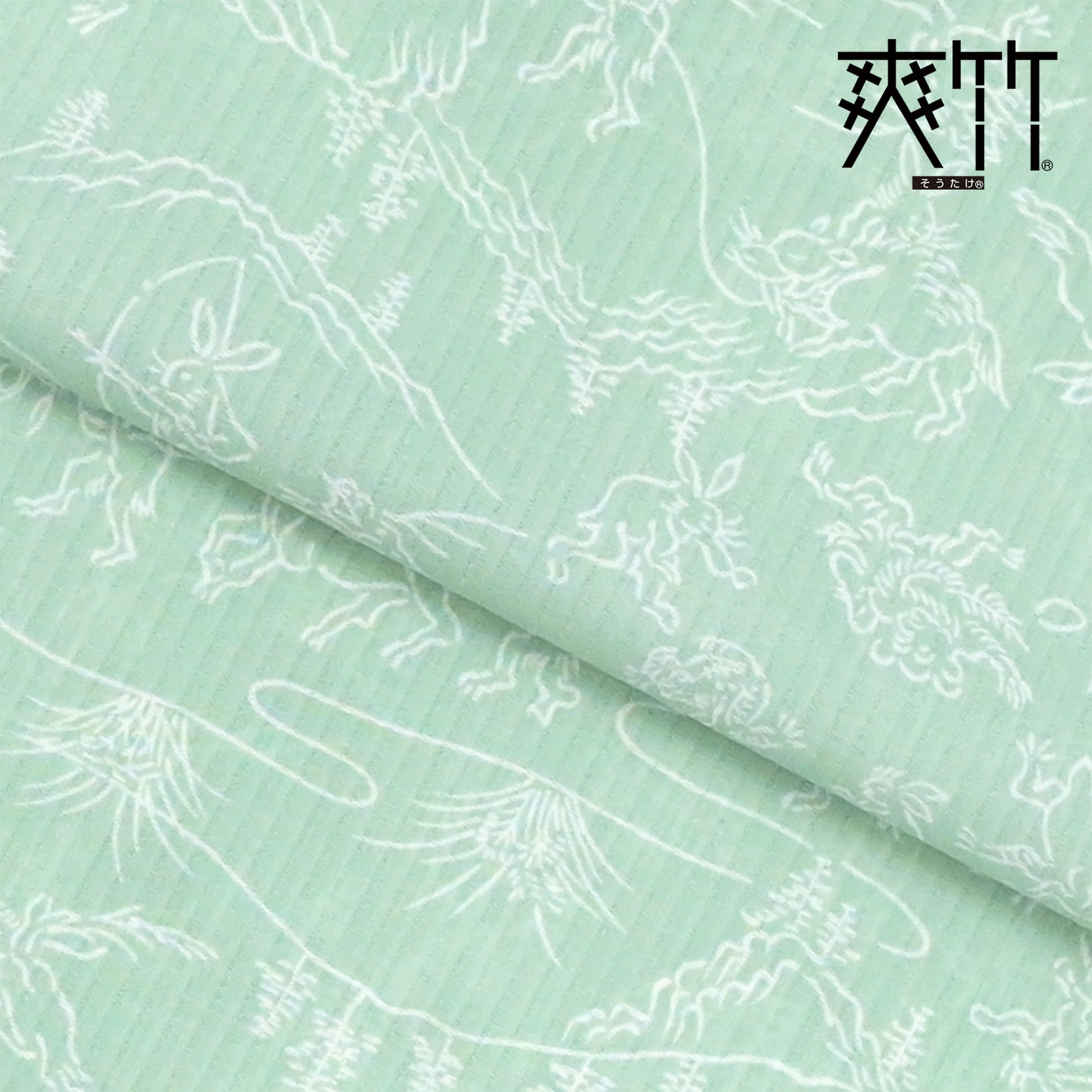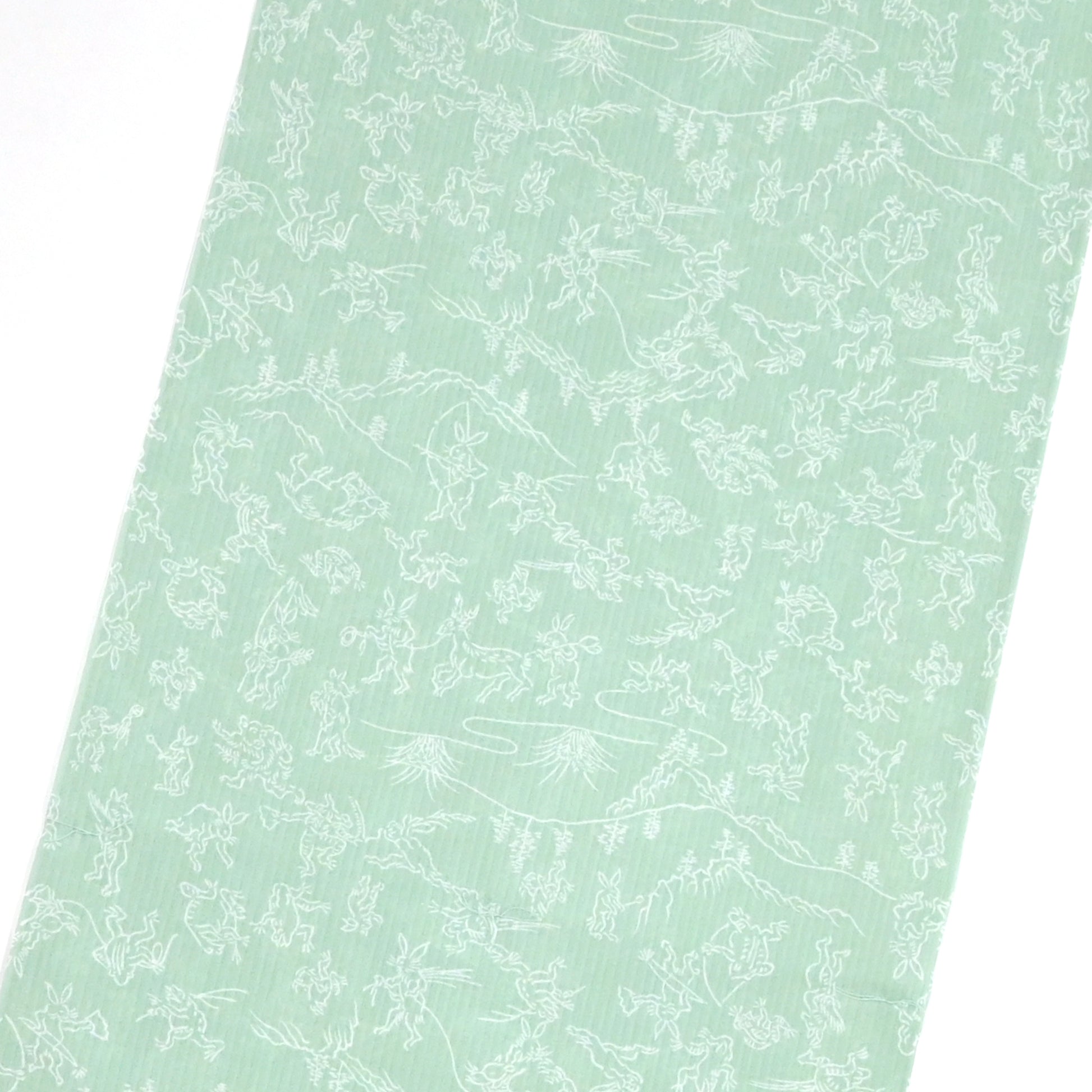 【東レ爽竹】新開発ストレッチ長襦袢 「鳥獣戯画」薄緑 #スリーシーズン