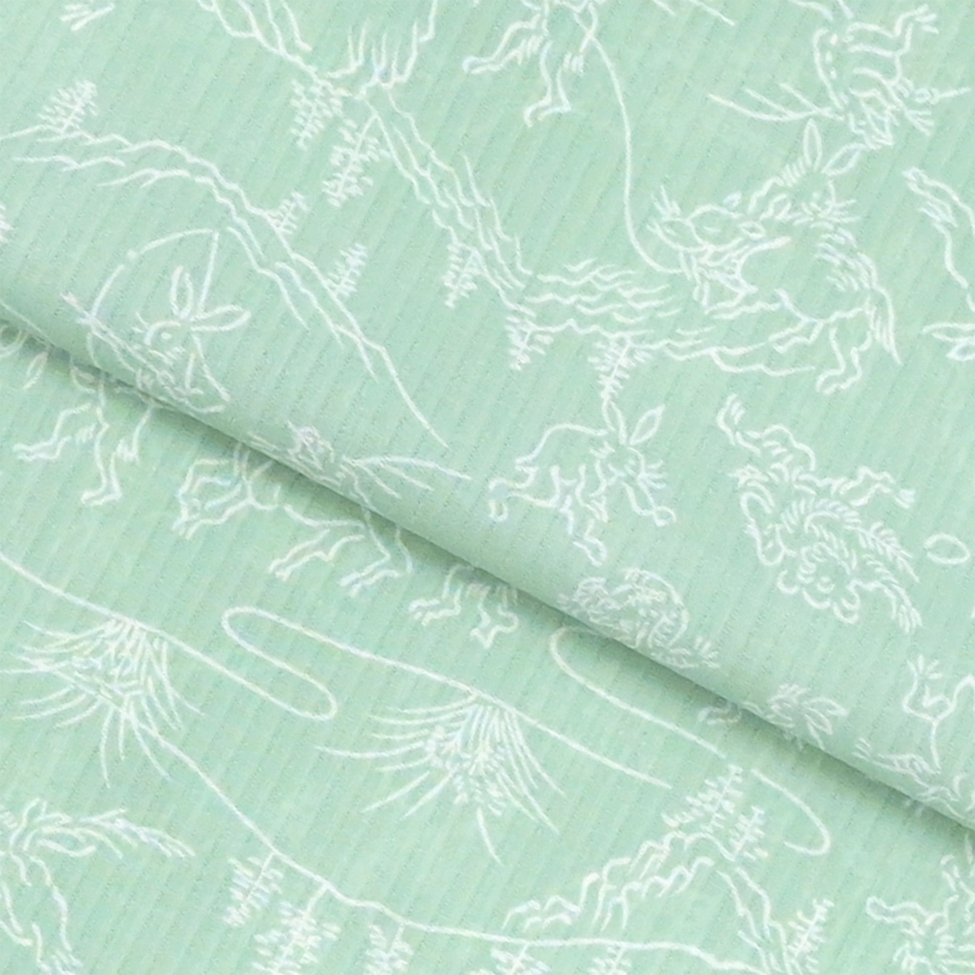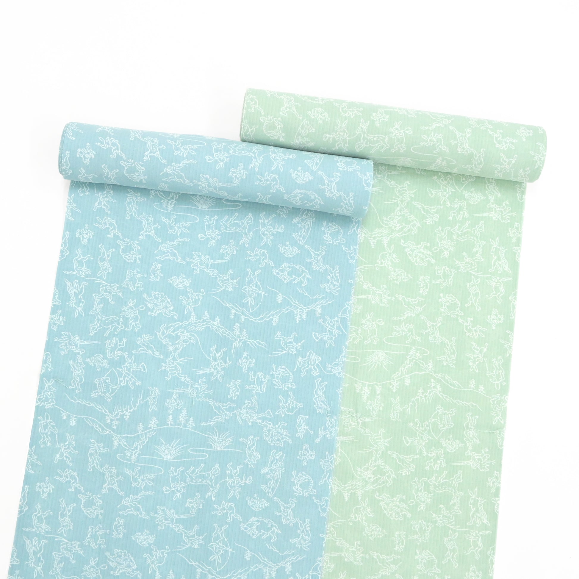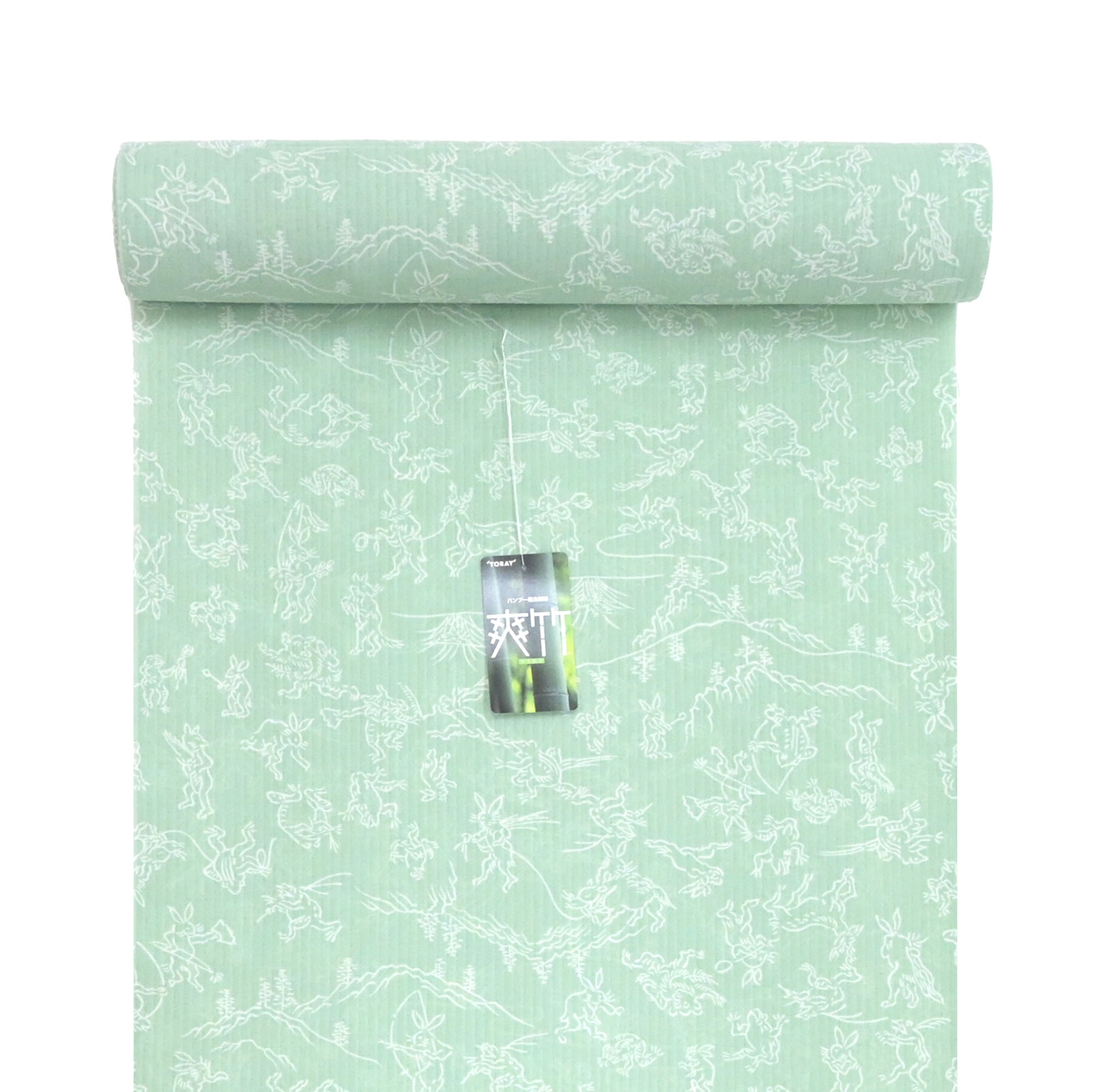 【東レ爽竹】新開発ストレッチ長襦袢 「鳥獣戯画」薄緑 #スリーシーズン