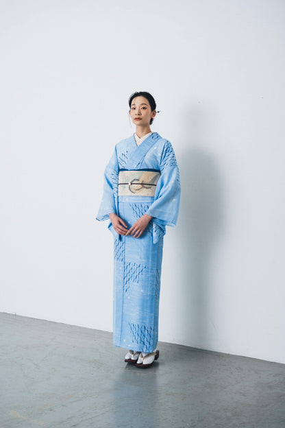 東レシルック 縞紗小紋 kifkif 「千鳥」 空色 【洗える夏きもの】