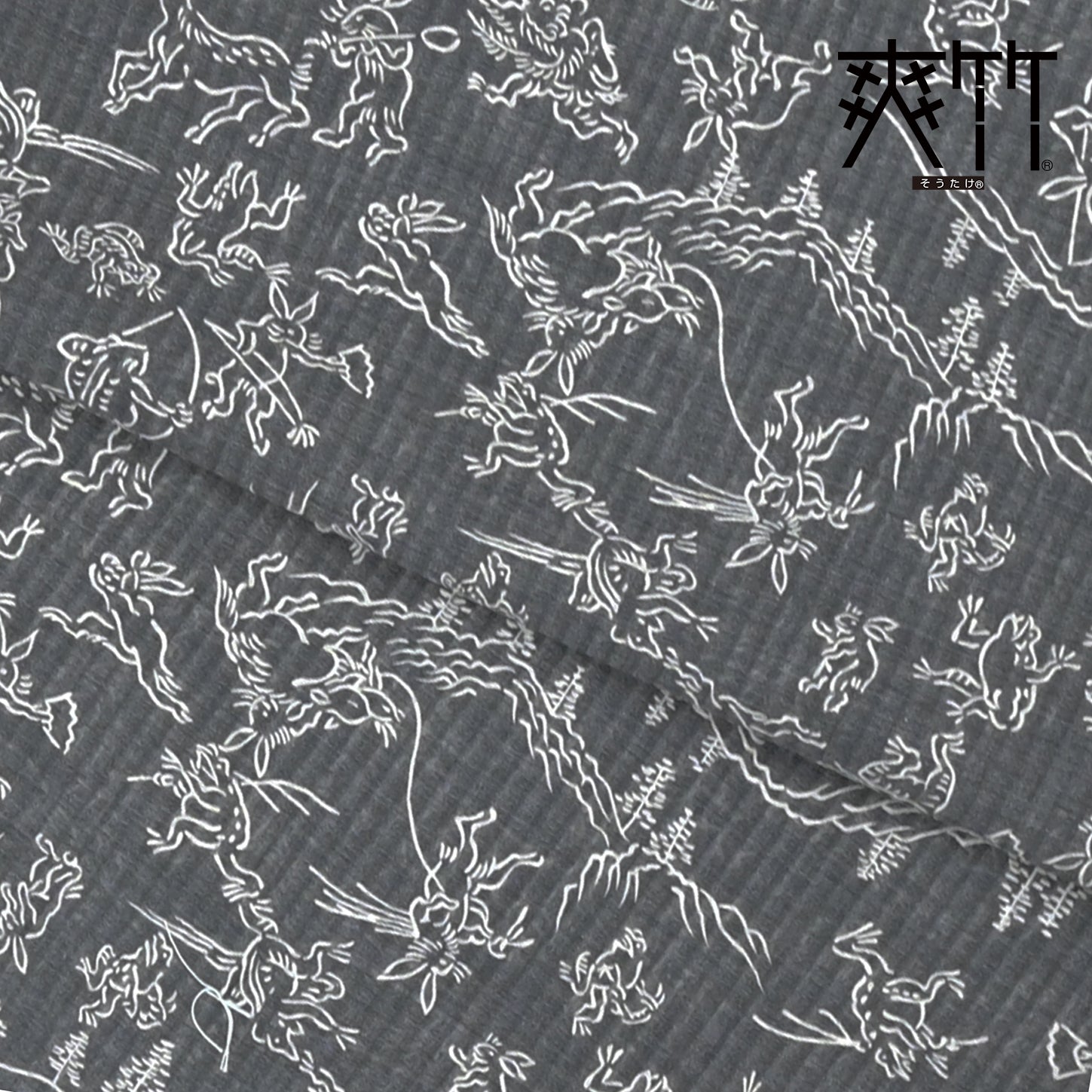 鳥獣戯画の動物たちが、軽やかに舞うように描かれた印象的なデザイン。